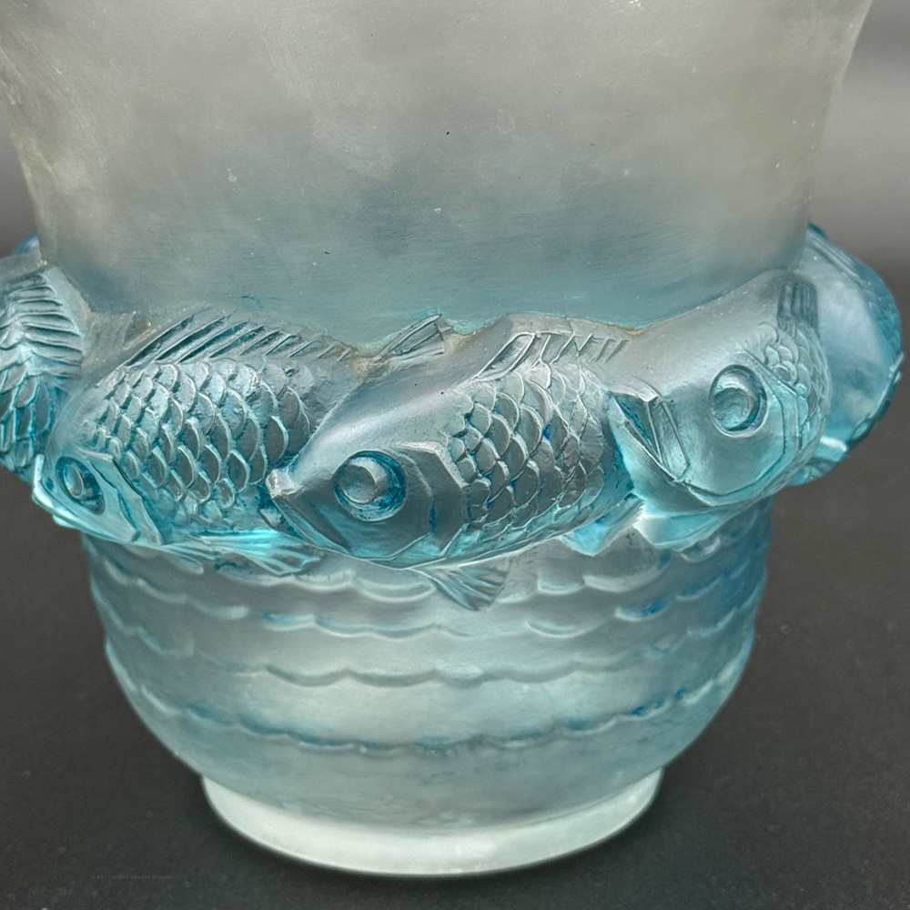 Verre blanc - Patine bleue. Référence : Félix Marcilhac, catalogue raisonné de l'oeuvre de verre de R.Lalique, éd. de l'Amateur Paris, 1994, p.447