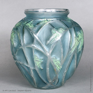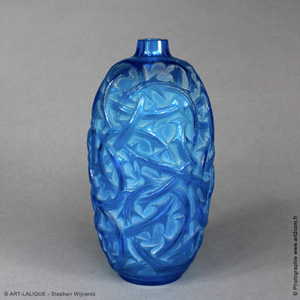Enfin, Lalique fera appel aux talents de décoratrice de sa fille Suzanne qui concevra des décors soulignés d'émail brun ou noir comme le vase «Lagamar» créé en 1926 (cf vente Ader du 18/12/2013).