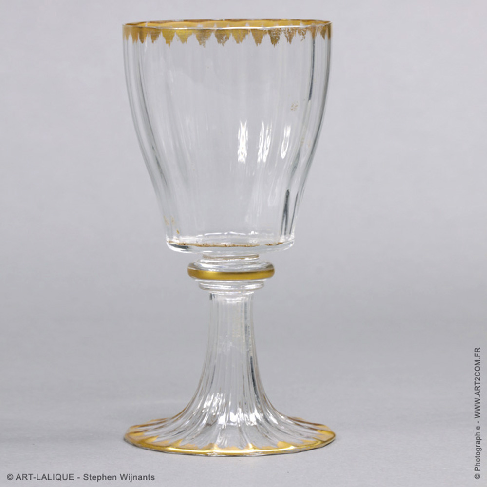 Service pour 12 (vin blanc - vin rouge - eau). Verre blanc doré.
