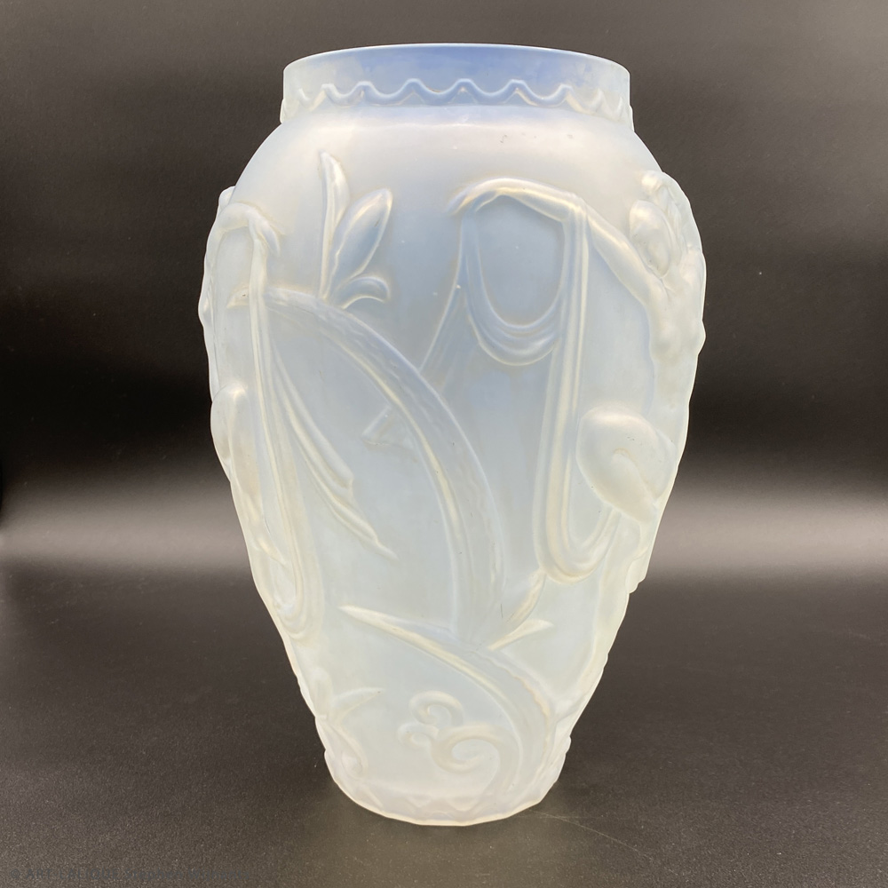 Un vase en verre opalescent dessiné par Mme Sevin circa 1930, signé en lettres moulées