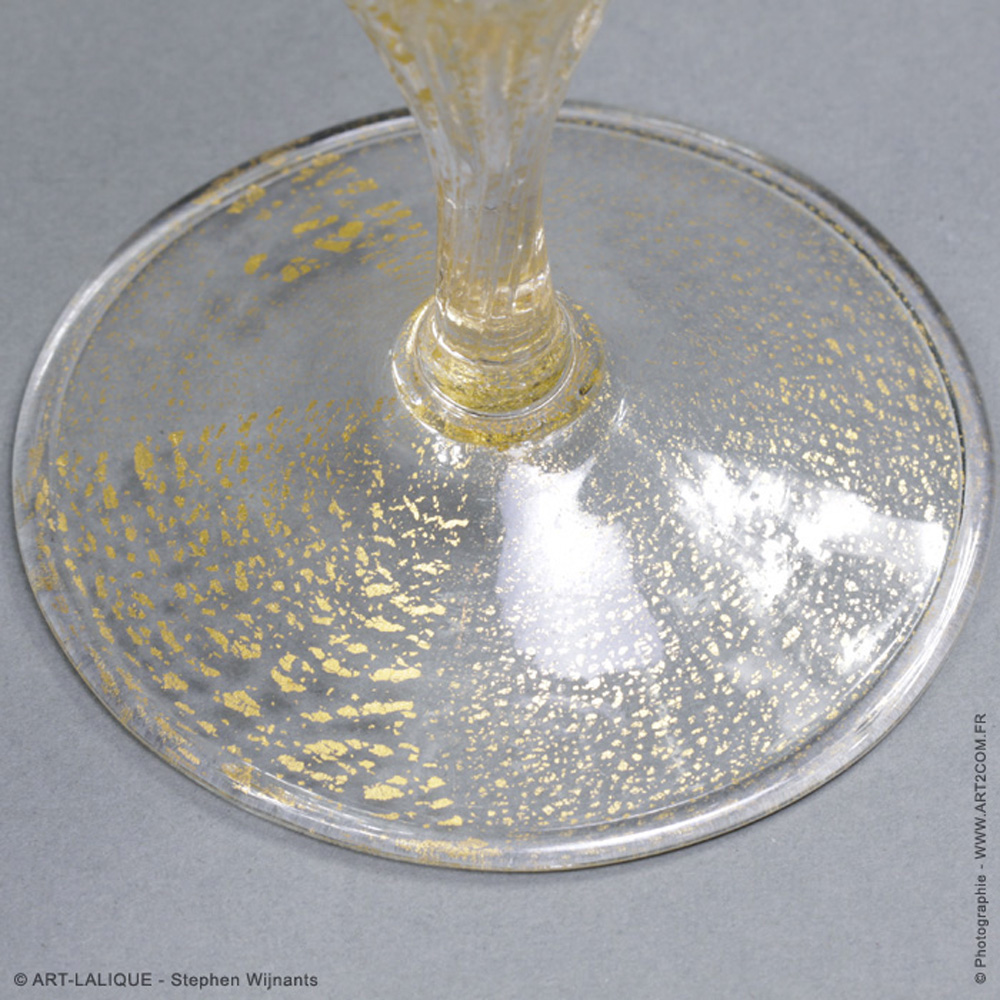 Service pour 11 (Champagne - vin blanc - vin rouge - eau). Verre doré à paillettes.