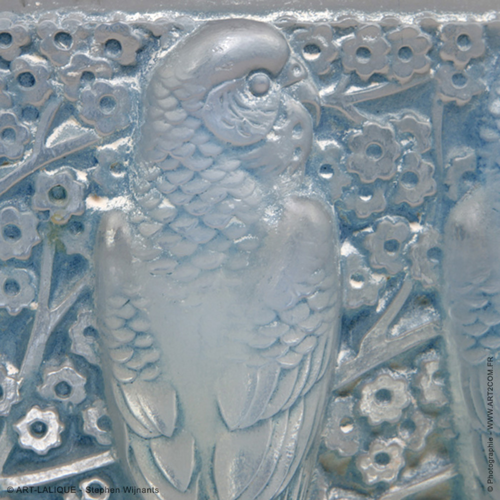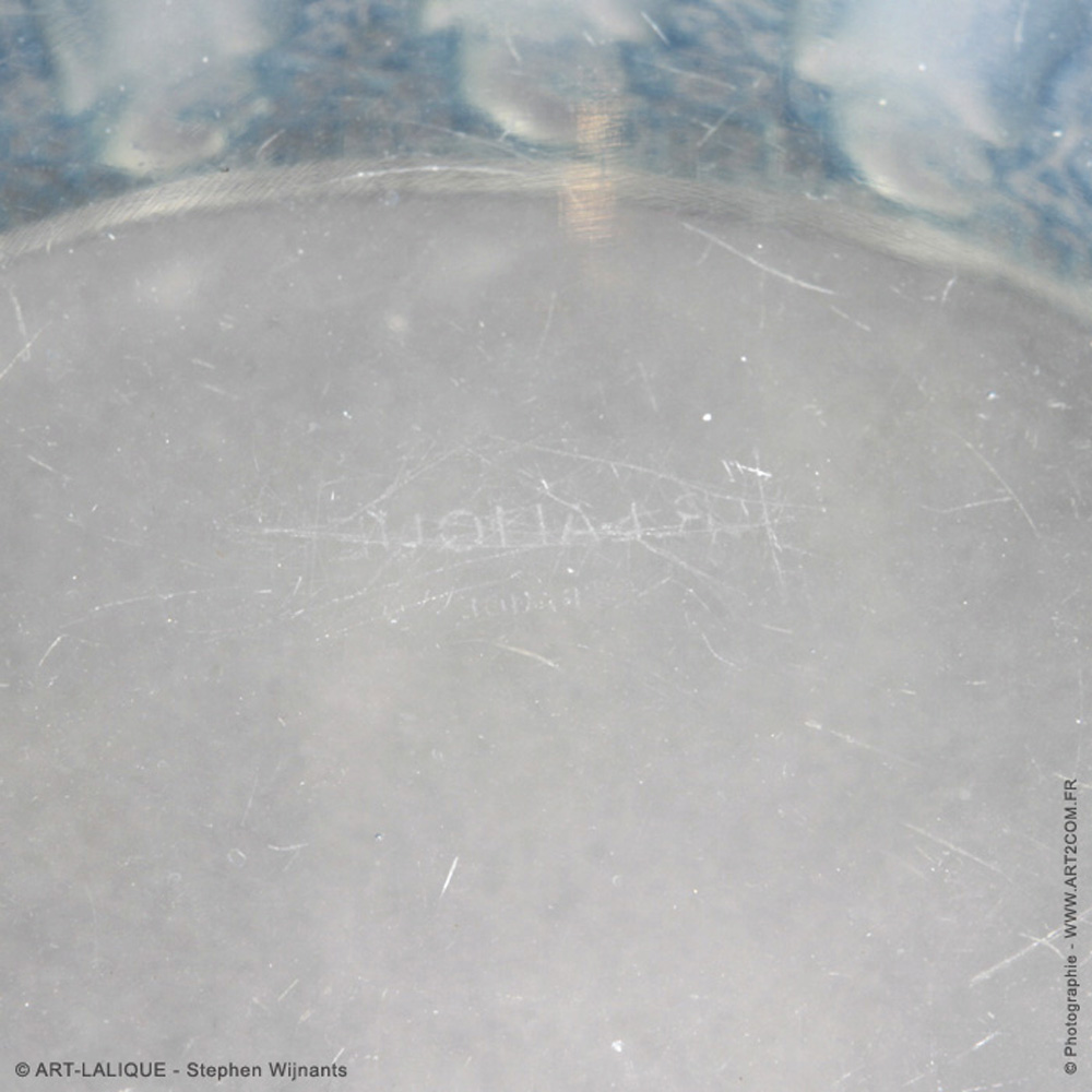 Verre opalescent - Patine bleue. Référence : Félix Marcilhac, catalogue raisonné de l'oeuvre de verre de R.Lalique, éd. de l'Amateur Paris, 1994, p. 302