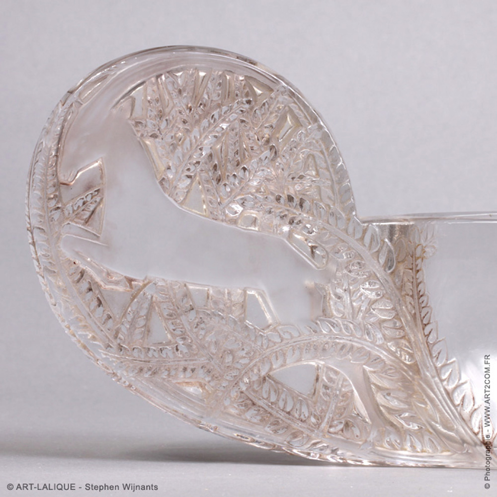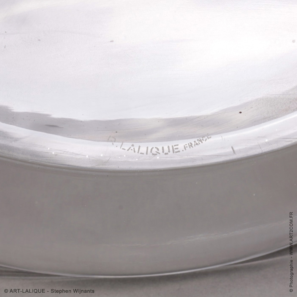 Verre blanc - Patine Sienne. Référence : Félix Marcilhac, catalogue raisonné de l'oeuvre de verre de R.Lalique, éd. de l'Amateur Paris, 1994, p. 773