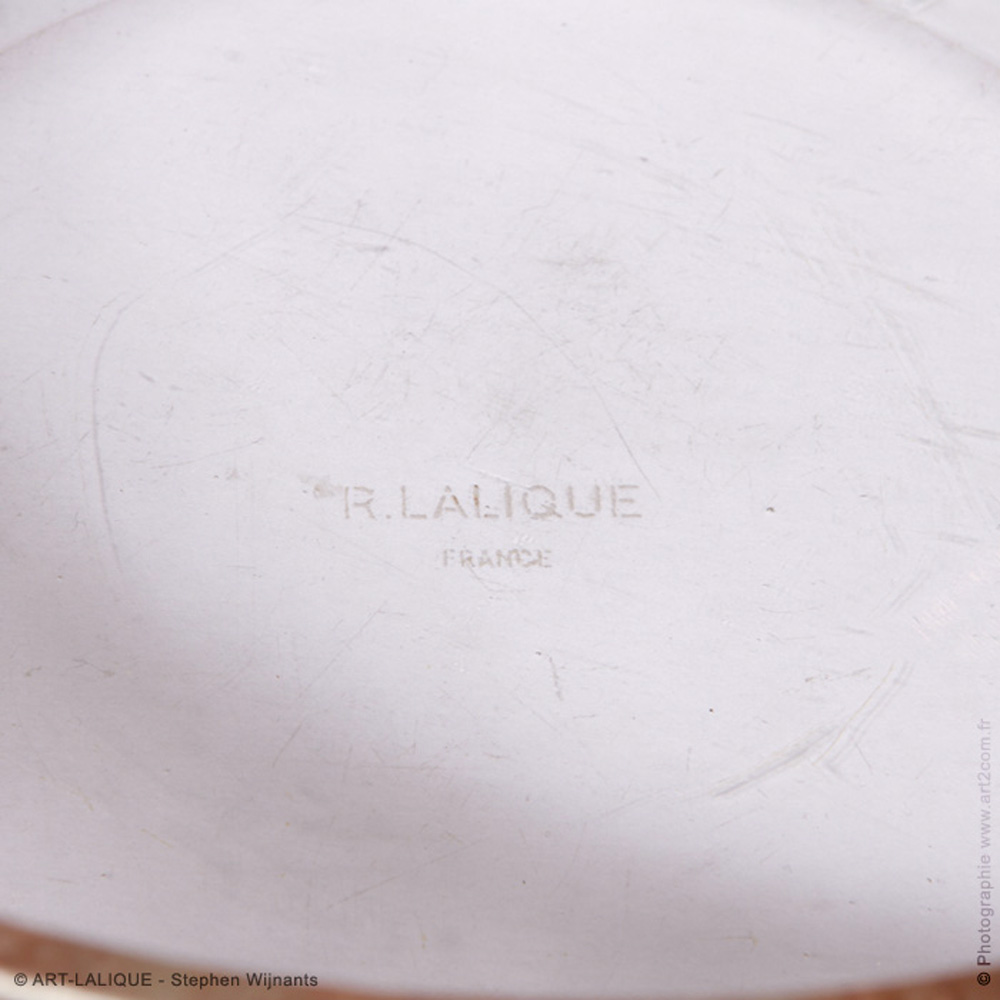 Verre blanc - Patine Sienne. Référence : Félix Marcilhac, catalogue raisonné de l'oeuvre de verre de R.Lalique, éd. de l'Amateur Paris, 1994, p.302