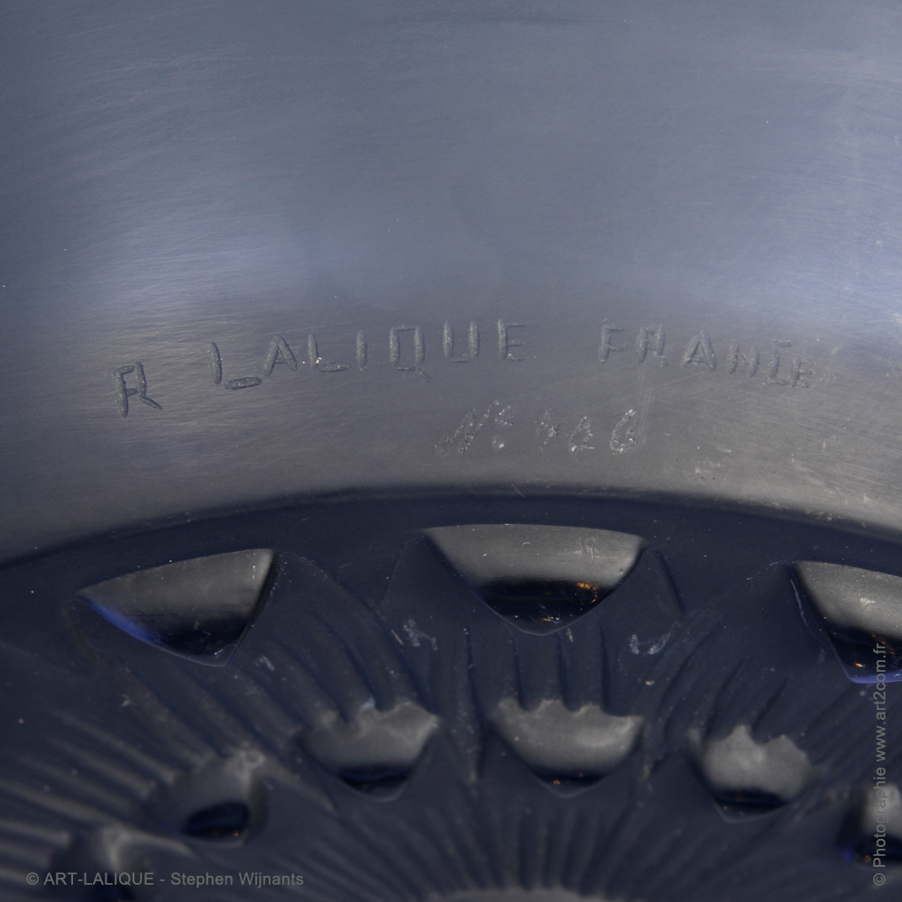 Verre de couleur bleue. Référence : Félix Marcilhac, catalogue raisonné de l'oeuvre de verre de R.Lalique, éd. de l'Amateur Paris, 1994, p.299