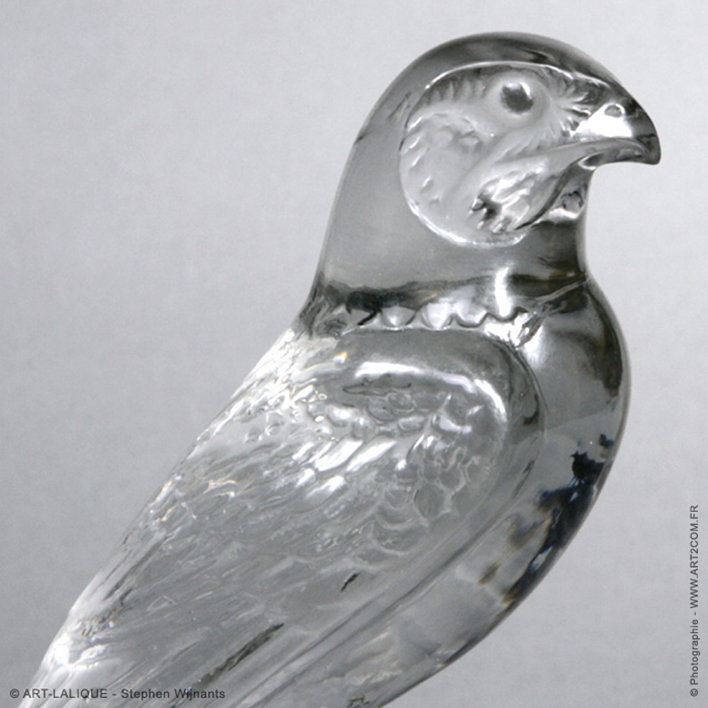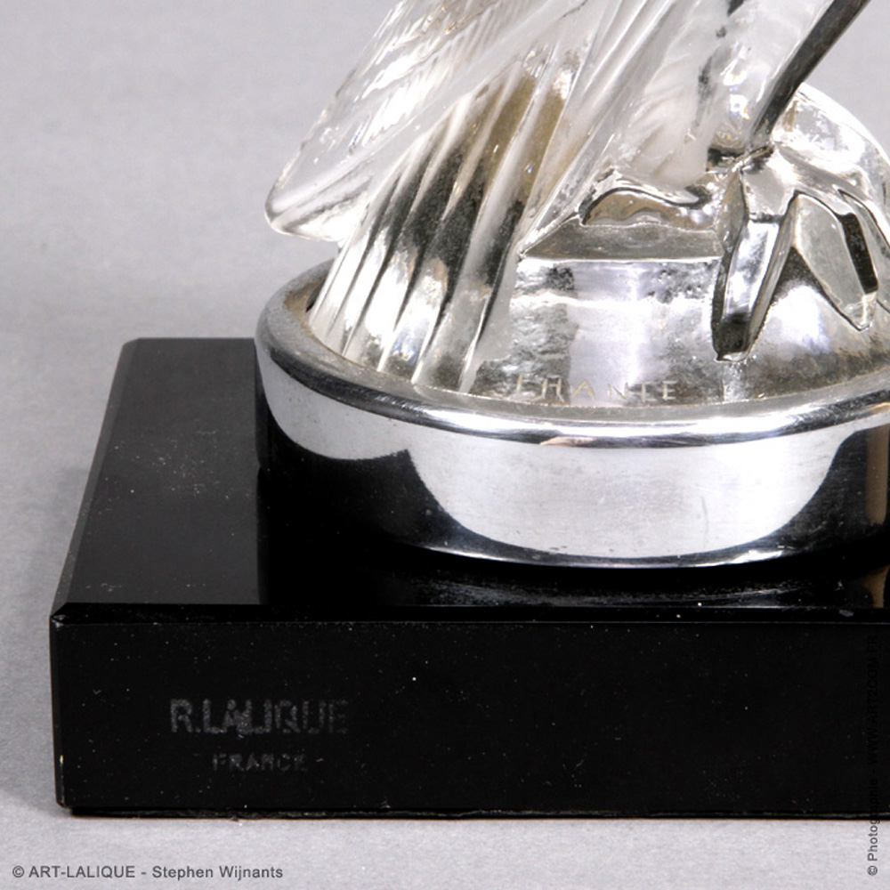 Verre blanc - Socle en verre noir. Référence : Félix Marcilhac, catalogue raisonné de l'oeuvre de verre de R.Lalique, éd. de l'Amateur Paris, 1994, p.507