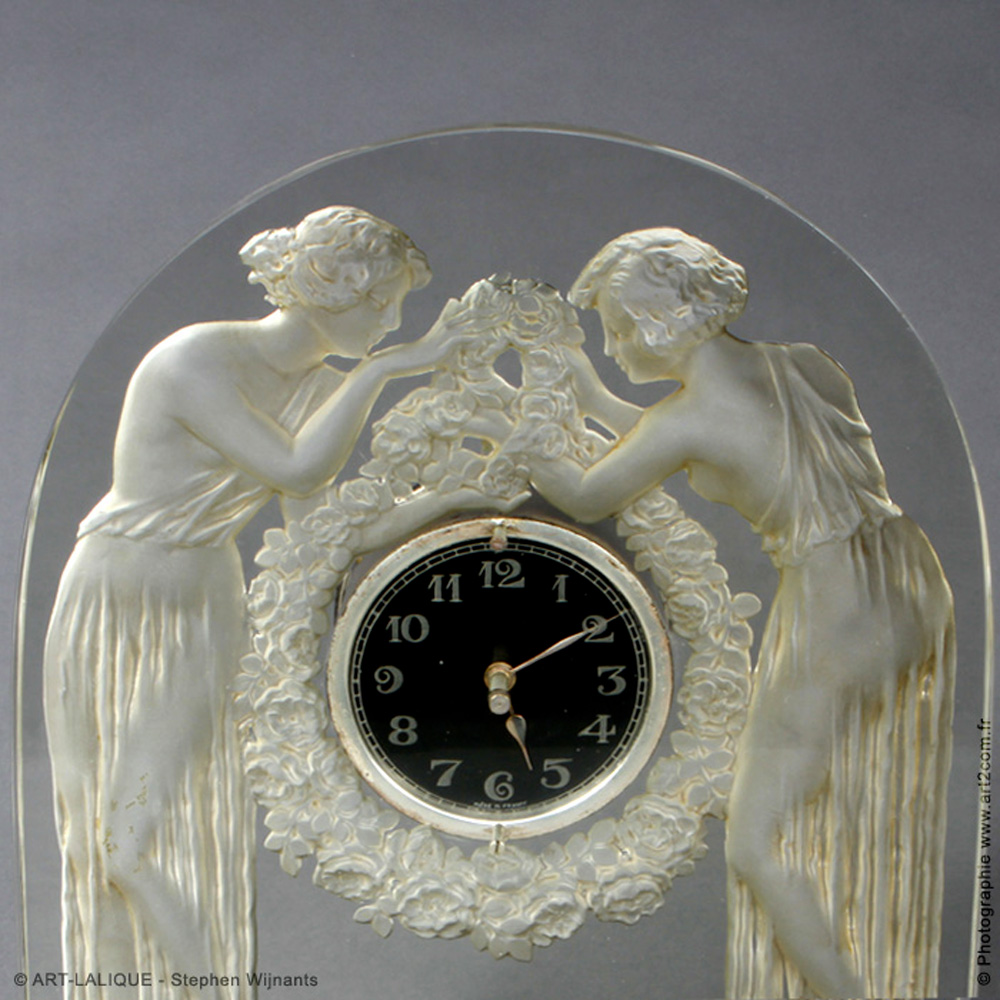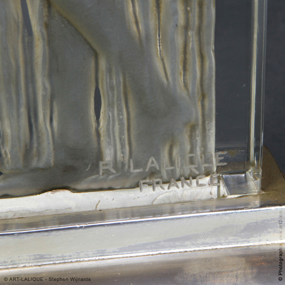 Verre blanc - Socle métallique. Référence : Félix Marcilhac, catalogue raisonné de l'oeuvre de verre de R.Lalique, éd. de l'Amateur Paris, 1994, p.371