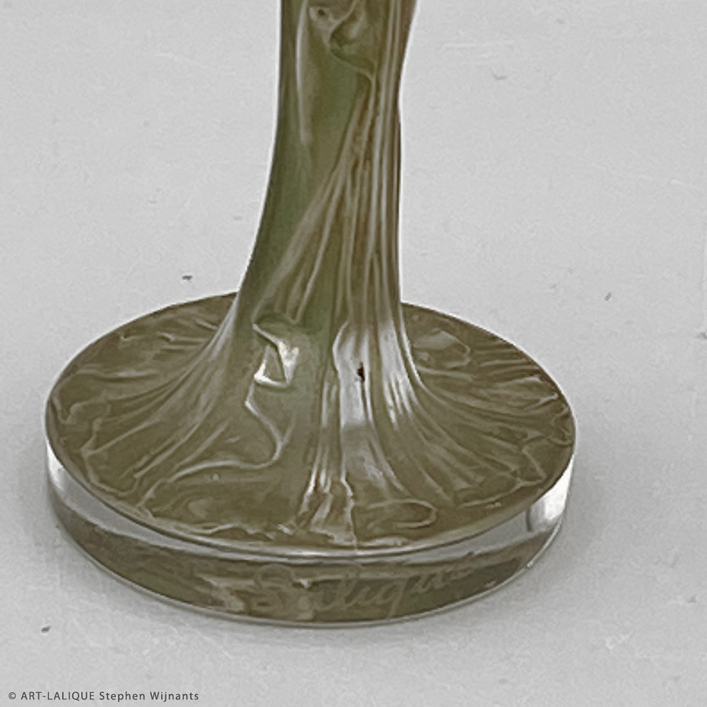 Verre blanc - Patine verte d'origine. Référence : Félix Marcilhac, catalogue raisonné de l'oeuvre de verre de R.Lalique, éd. de l'Amateur Paris, 1994, p.249