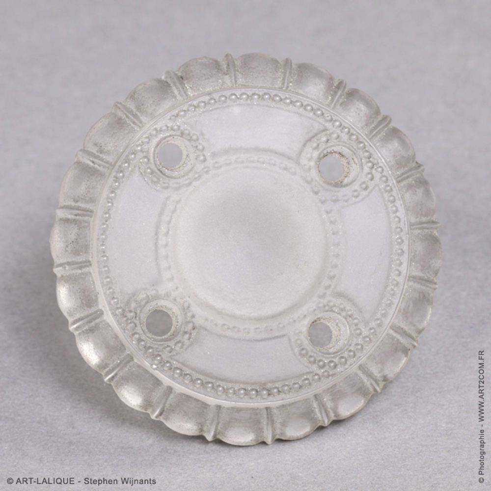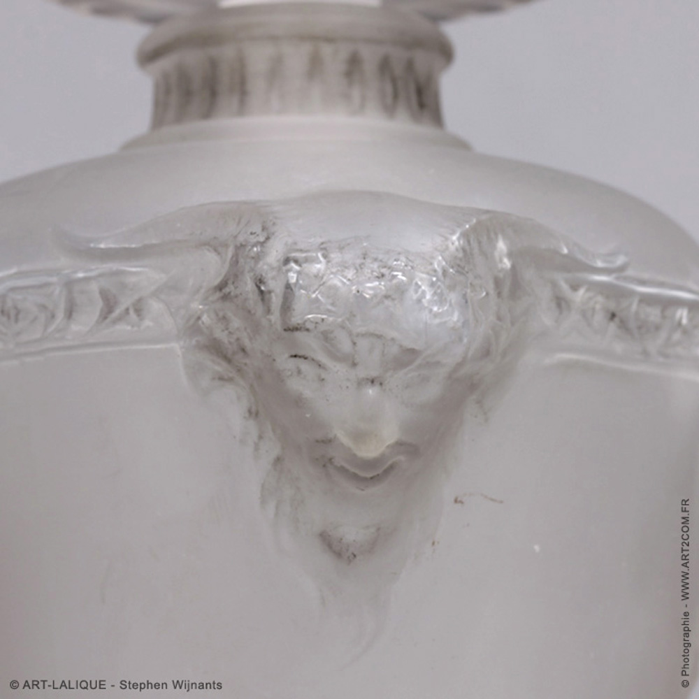 Verre blanc - Patine grise. Référence : Félix Marcilhac, catalogue raisonné de l'oeuvre de verre de R.Lalique, éd. de l'Amateur Paris, 1994, p. 940