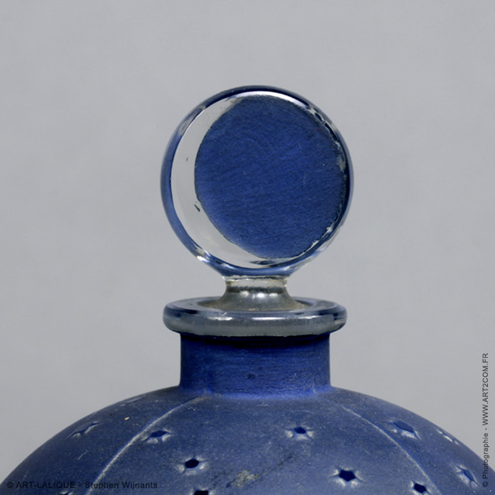 Verre couleur bleu nuit. Référence : Félix Marcilhac, catalogue raisonné de l'oeuvre de verre de R.Lalique, éd. de l'Amateur Paris, 1994, p. 952