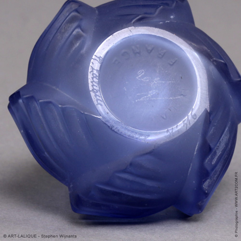 Verre couleur bleue. Référence : Félix Marcilhac, catalogue raisonné de l'oeuvre de verre de R.Lalique, éd. de l'Amateur Paris, 1994, p. 335