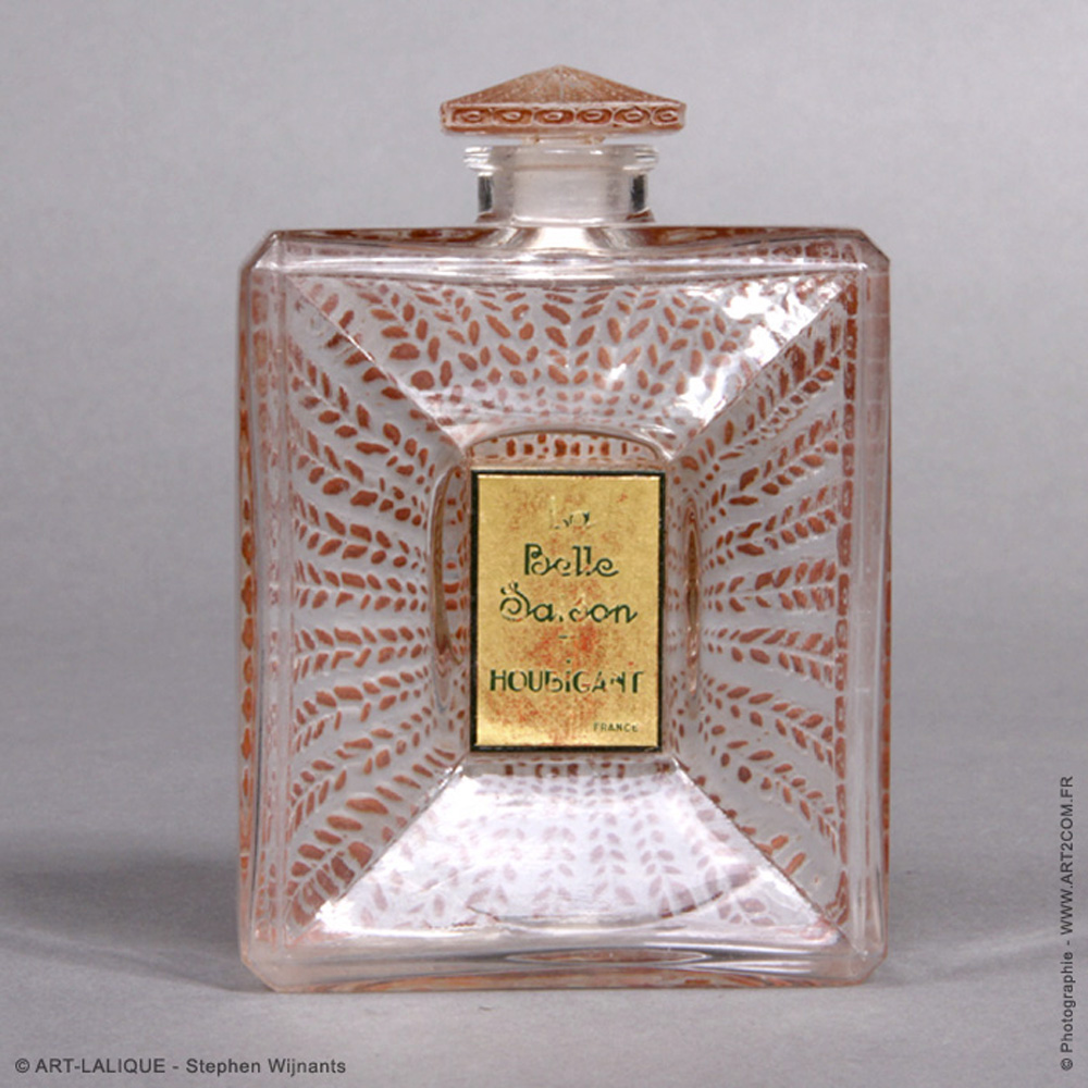 Verre blanc - Patine Sienne. Etiquette d'origine au dos. Référence : Félix Marcilhac, catalogue raisonné de l'oeuvre de verre de R.Lalique, éd. de l'Amateur Paris, 1994, p. 935