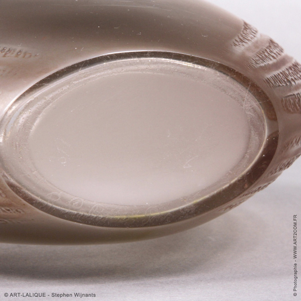 Verre blanc - Patine Sienne. Référence : Félix Marcilhac, catalogue raisonné de l'oeuvre de verre de R.Lalique, éd. de l'Amateur Paris, 1994, p.345