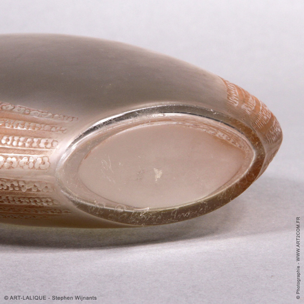 Verre blanc - Patine Sienne. Référence : Félix Marcilhac, catalogue raisonné de l'oeuvre de verre de R.Lalique, éd. de l'Amateur Paris, 1994, p.345
