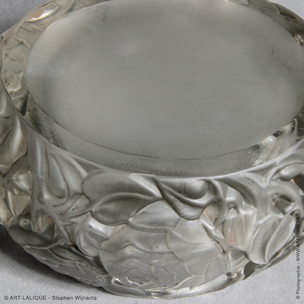 Verre blanc - Patine grise - Référence : Félix Marcilhac, catalogue raisonné de l'oeuvre de verre de R.Lalique, éd. de l'Amateur Paris, 1994, p.237