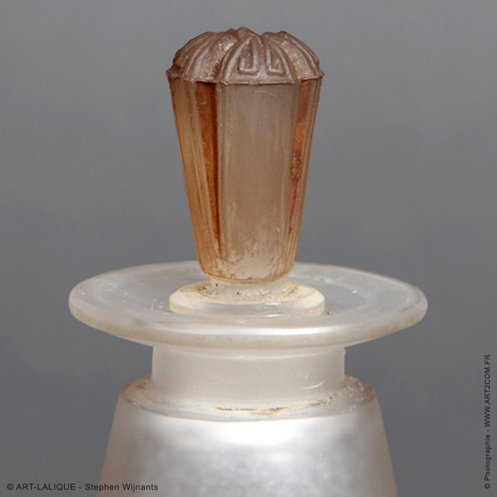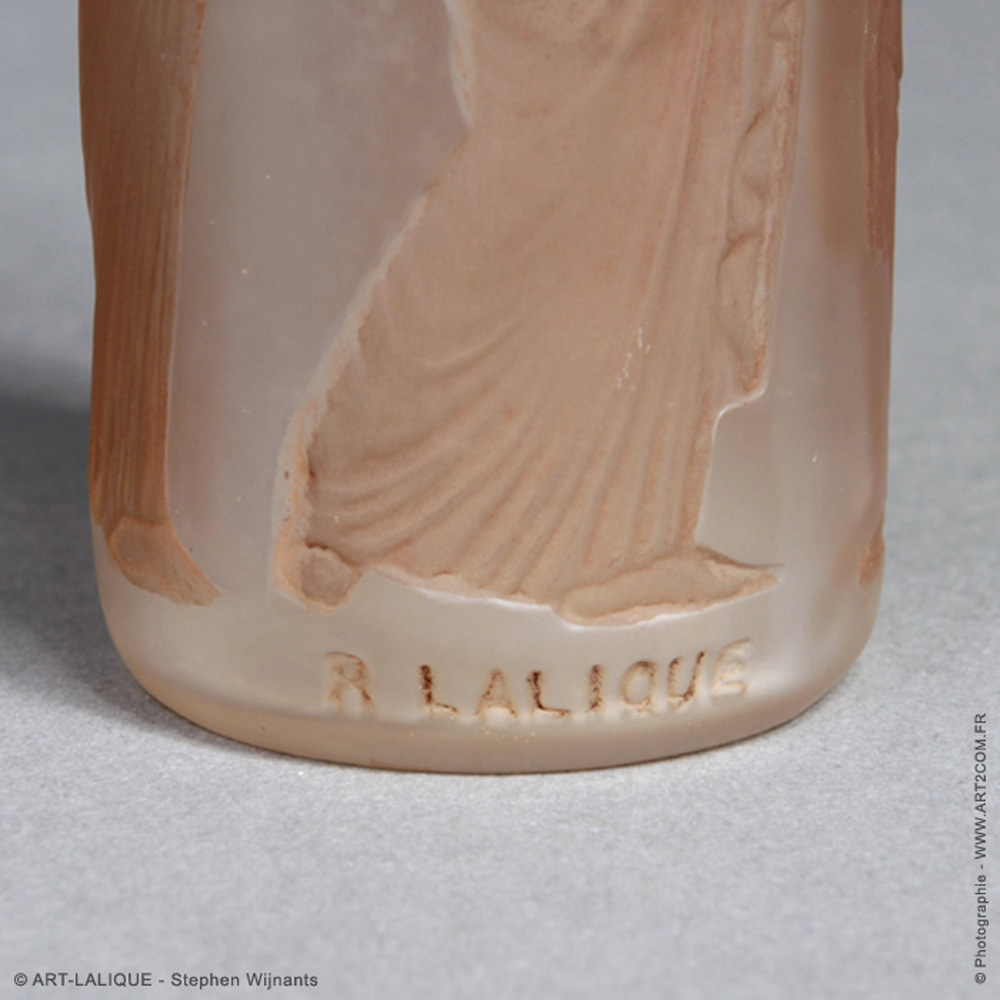 Verre blanc satiné - Patine Sienne. Référence : Félix Marcilhac, catalogue raisonné de l'oeuvre de verre de R.Lalique, éd. de l'Amateur Paris, 1994, p.927