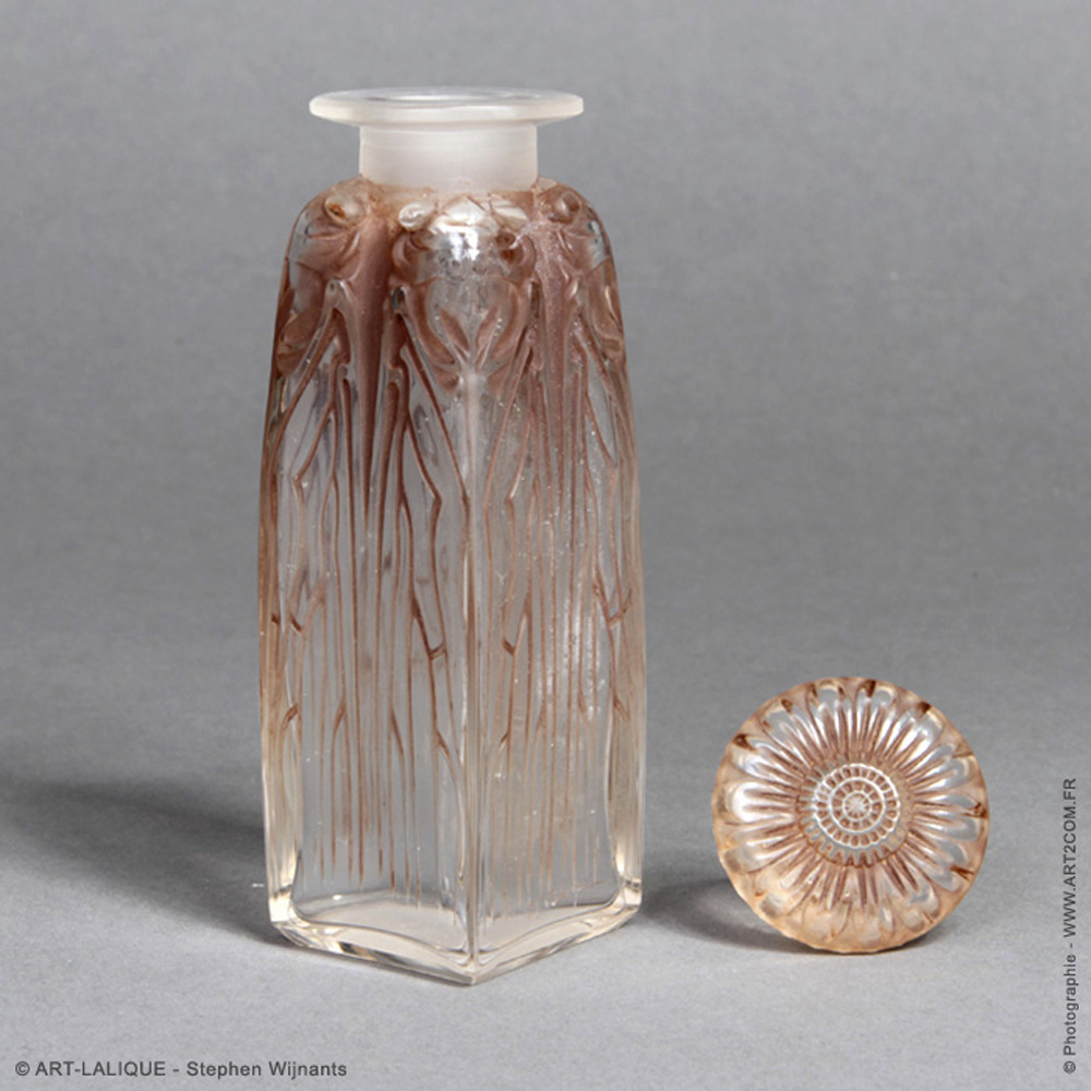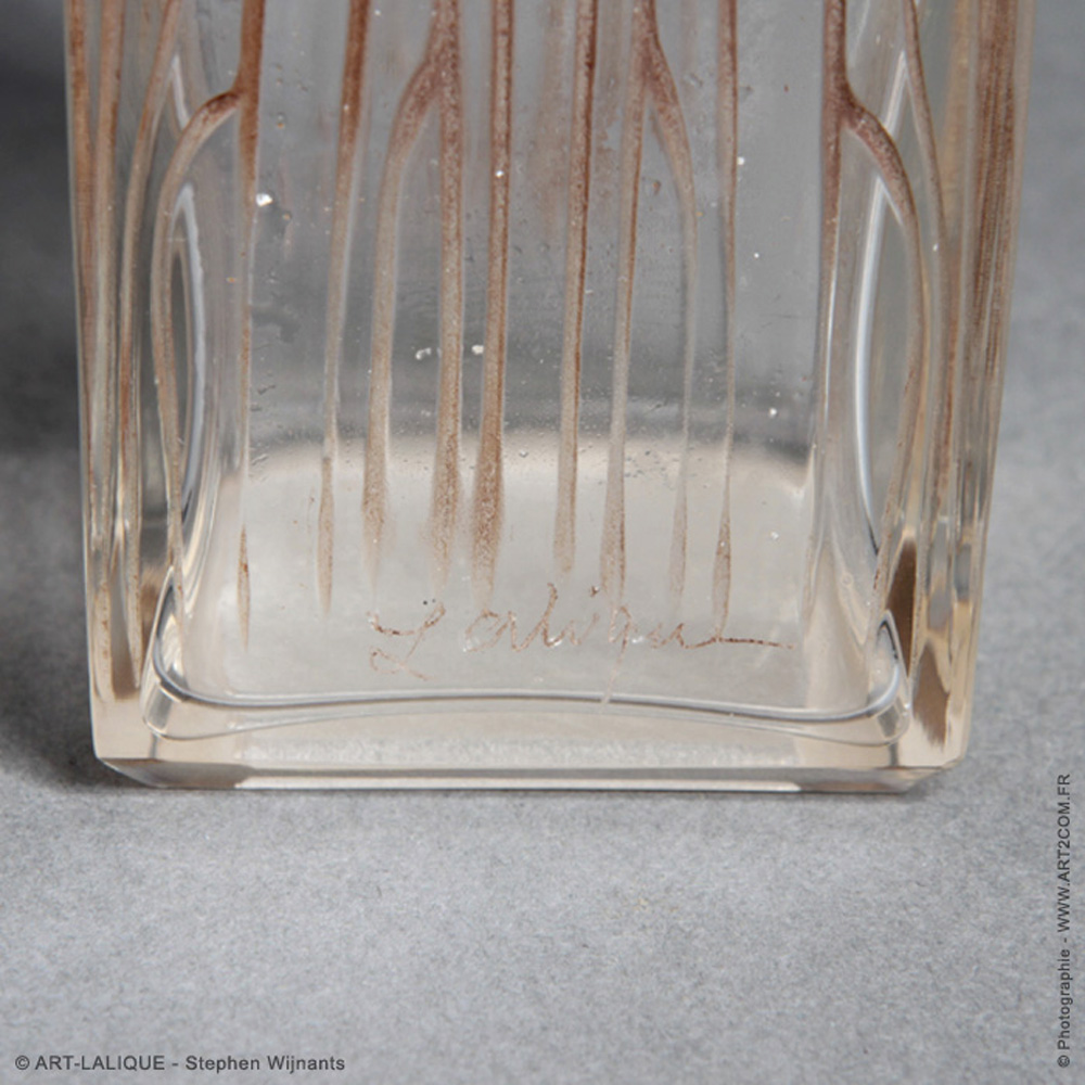 Verre blanc - Patine Sienne. Référence : Félix Marcilhac, catalogue raisonné de l'oeuvre de verre de R.Lalique, éd. de l'Amateur Paris, 1994, p.325
