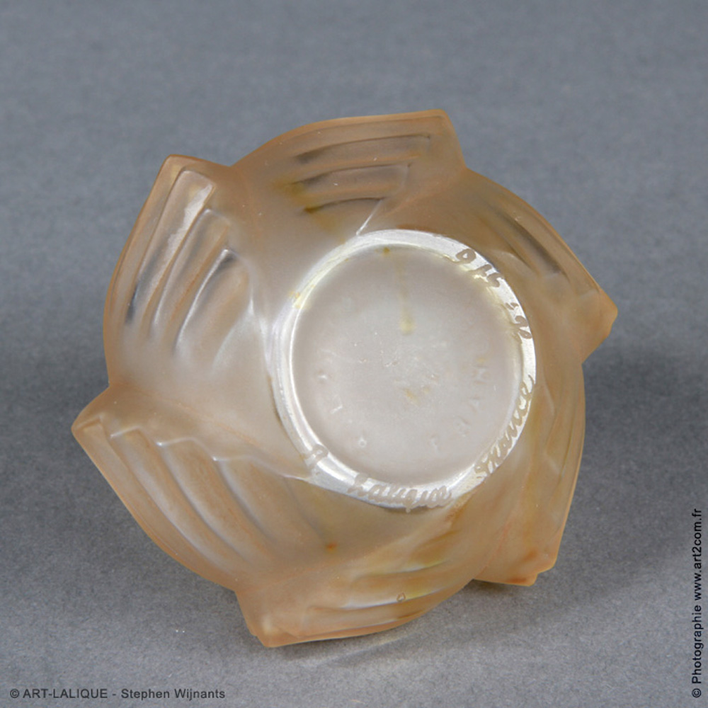 Verre blanc - Patine Sienne. Référence : Félix Marcilhac, catalogue raisonné de l'oeuvre de verre de R.Lalique, éd. de l'Amateur Paris, 1994, p.335