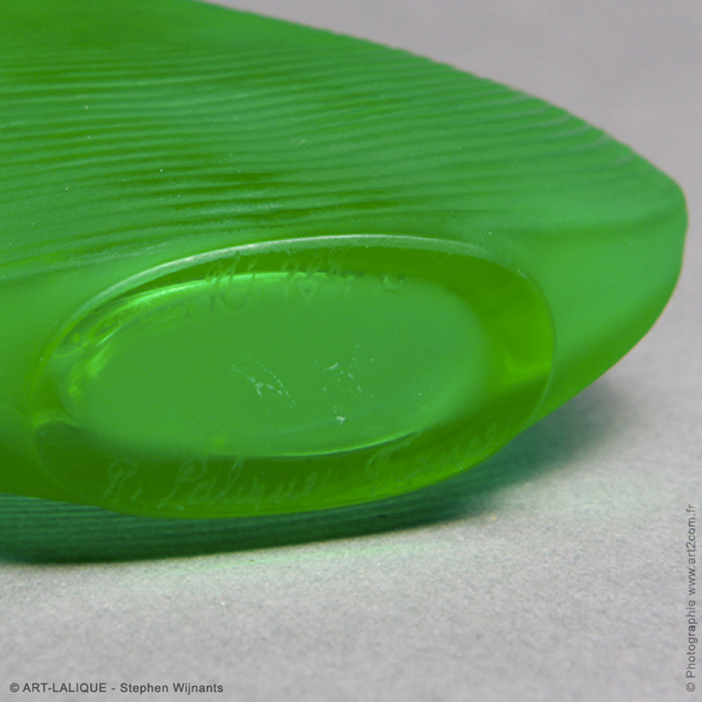 Verre couleur vert. Référence : Félix Marcilhac, catalogue raisonné de l'oeuvre de verre de R.Lalique, éd. de l'Amateur Paris, 1994, p.333