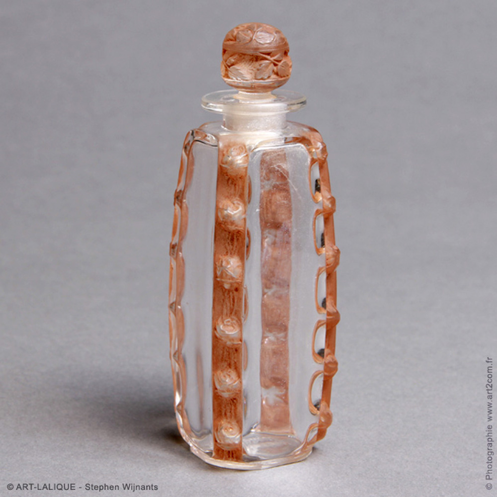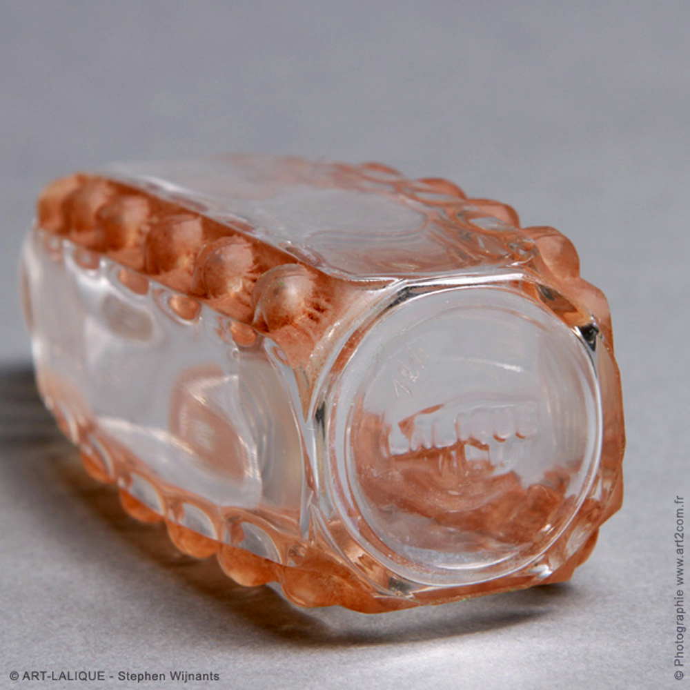 Verre blanc - Patine Sienne - Dans sa boite d'origine. Référence : Félix Marcilhac, catalogue raisonné de l'oeuvre de verre de R.Lalique, éd. de l'Amateur Paris, 1994, p. 947