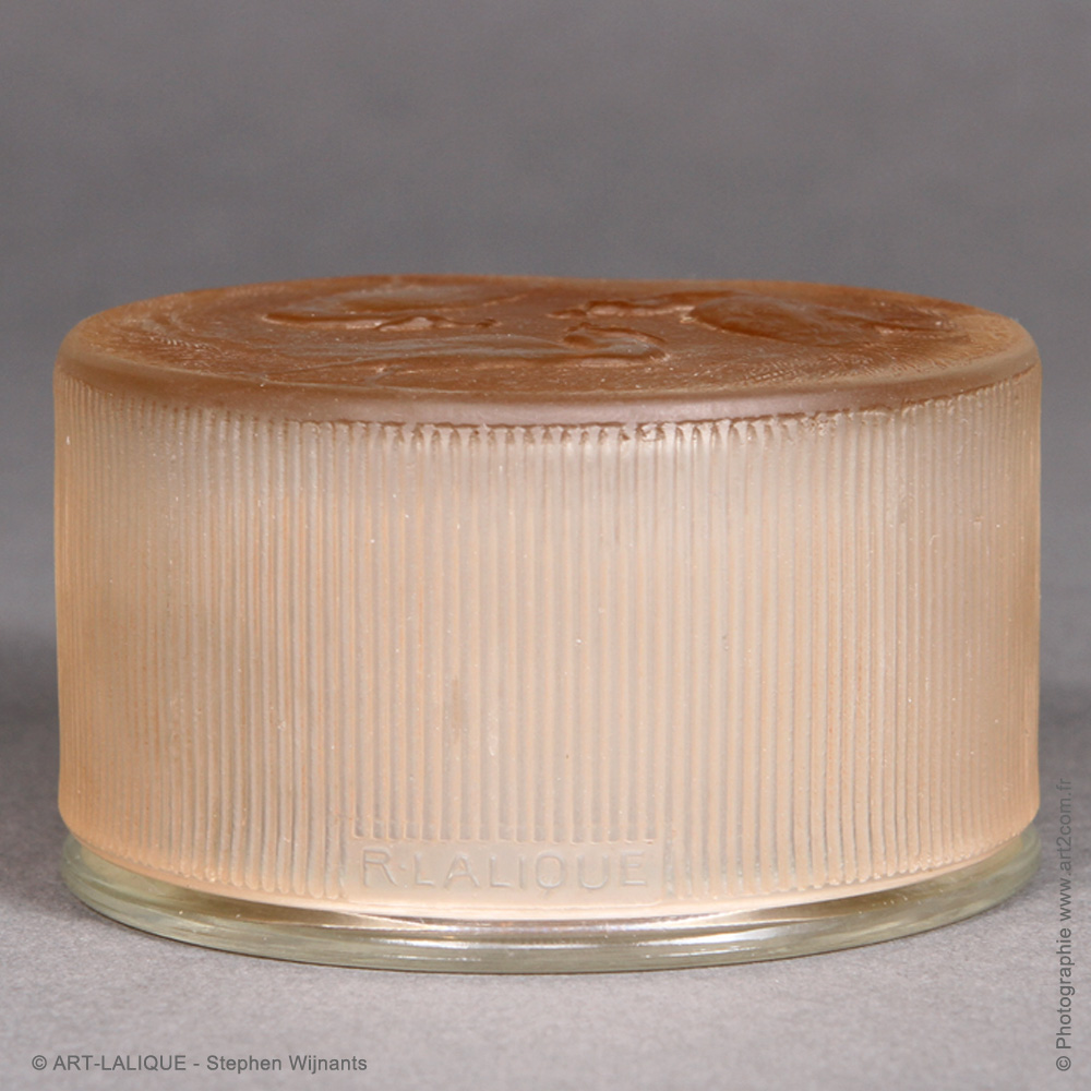 Verre blanc - Patine sépia. Référence : Félix Marcilhac, catalogue raisonné de l'oeuvre de verre de R.Lalique, éd. de l'Amateur Paris, 1994, p.228.