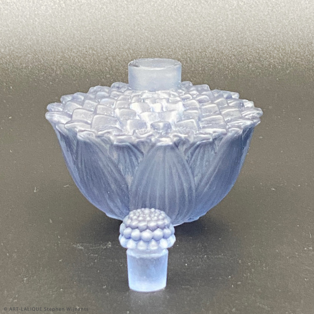 Verre blanc - Patine bleue. Référence : Félix Marcilhac, catalogue raisonné de l'oeuvre de verre de R.Lalique, éd. de l'Amateur Paris, 1994, N°522 p.337