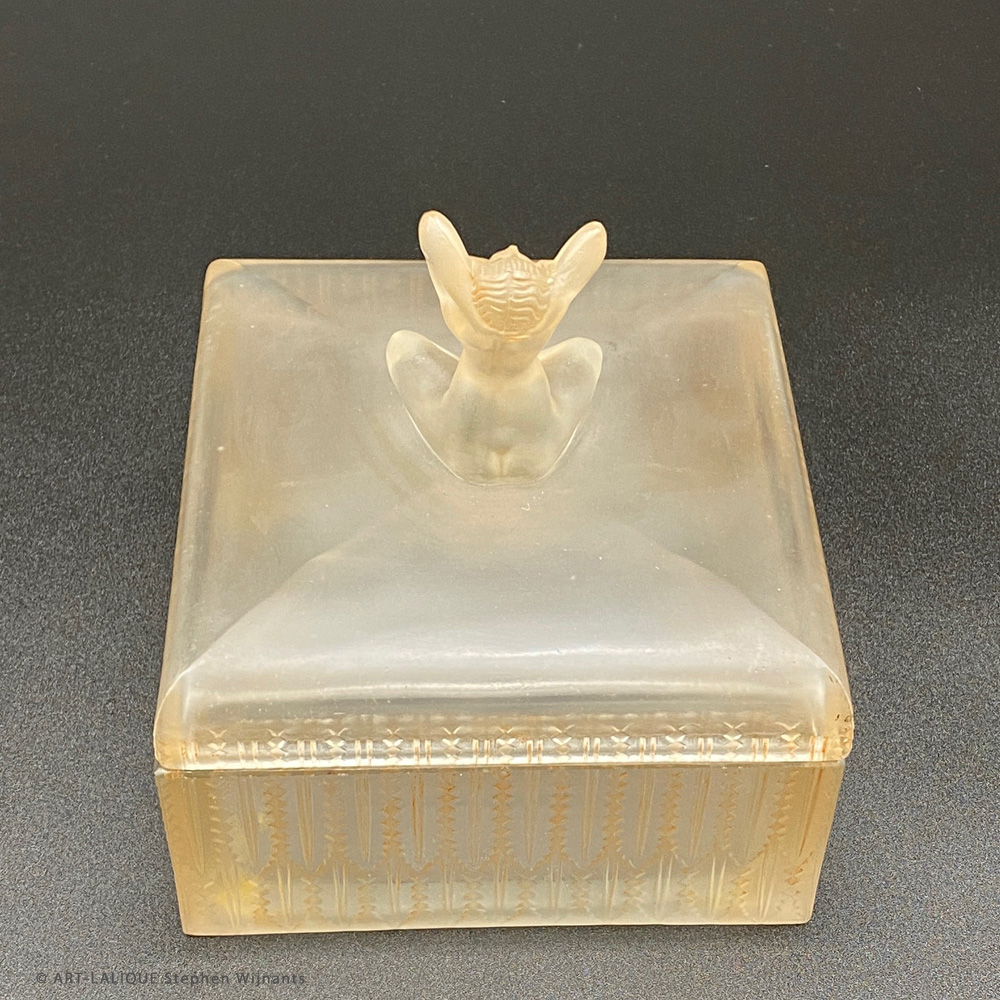 Verre blanc - Patine Sienne. Référence : Félix Marcilhac, catalogue raisonné de l'oeuvre de verre de R.Lalique, éd. de l'Amateur Paris, 1994, p.239