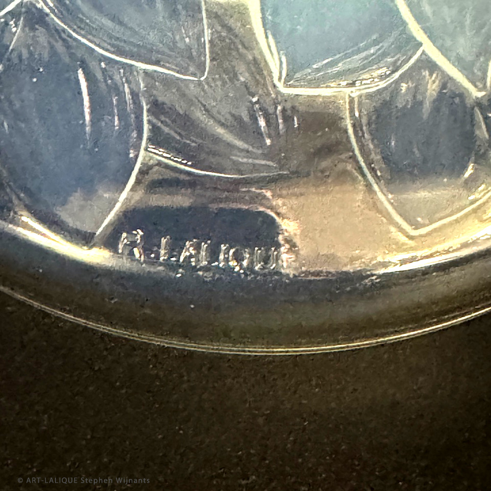 Verre opalescent. Référence : Félix Marcilhac, catalogue raisonné de l'oeuvre de verre de R.Lalique, éd. de l'Amateur Paris, 1994, N°47 p231.