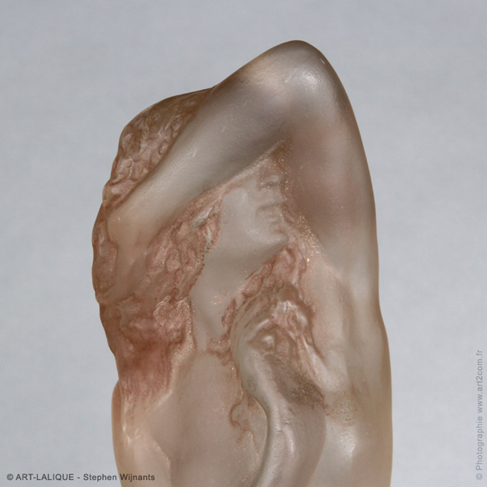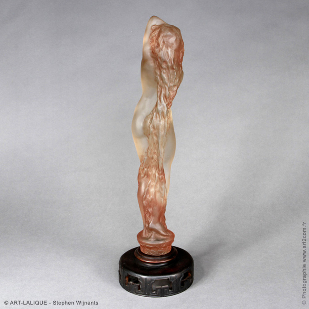 Verre blanc - Patine Sepia - Socle bois Référence : Félix Marcilhac, catalogue raisonné de l'oeuvre de verre de R.Lalique, éd. de l'Amateur Paris, 1994, p.400