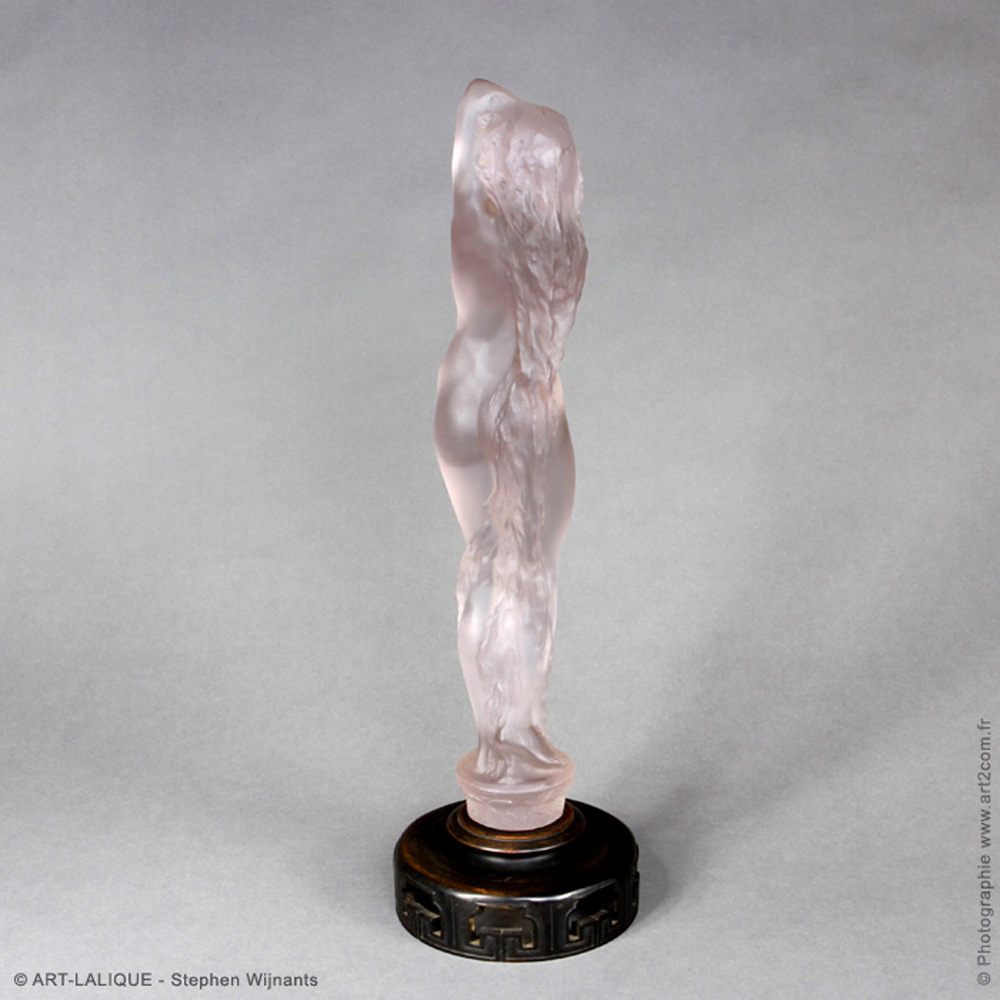 Verre blanc - Améthyste - Socle bois. Référence : Félix Marcilhac, catalogue raisonné de l'oeuvre de verre de R.Lalique, éd. de l'Amateur Paris, 1994, p.400