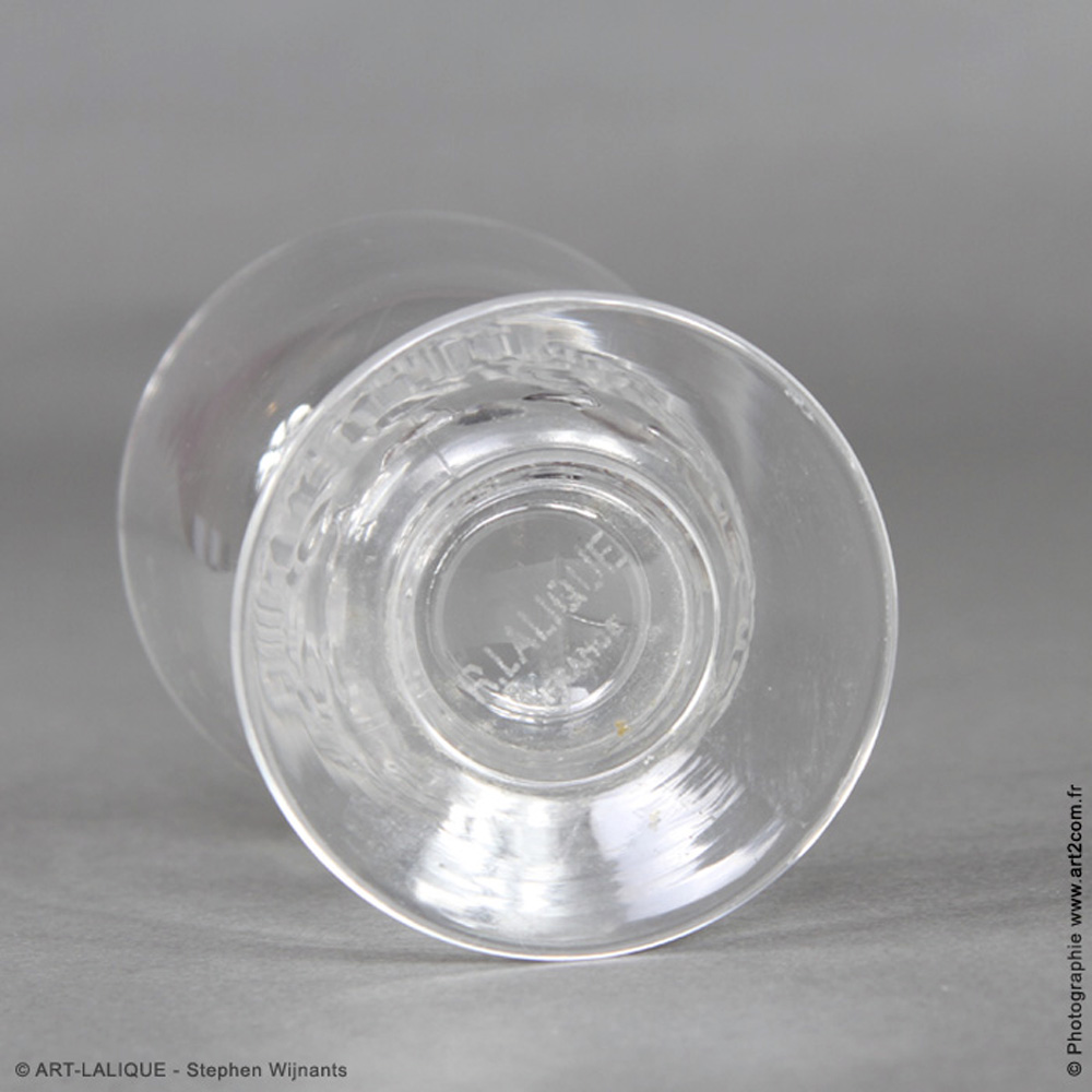 7 verres à cocktail - Verre blanc. Référence : Félix Marcilhac, catalogue raisonné de l'oeuvre de verre de R.Lalique, éd. de l'Amateur Paris, 1994, p.808