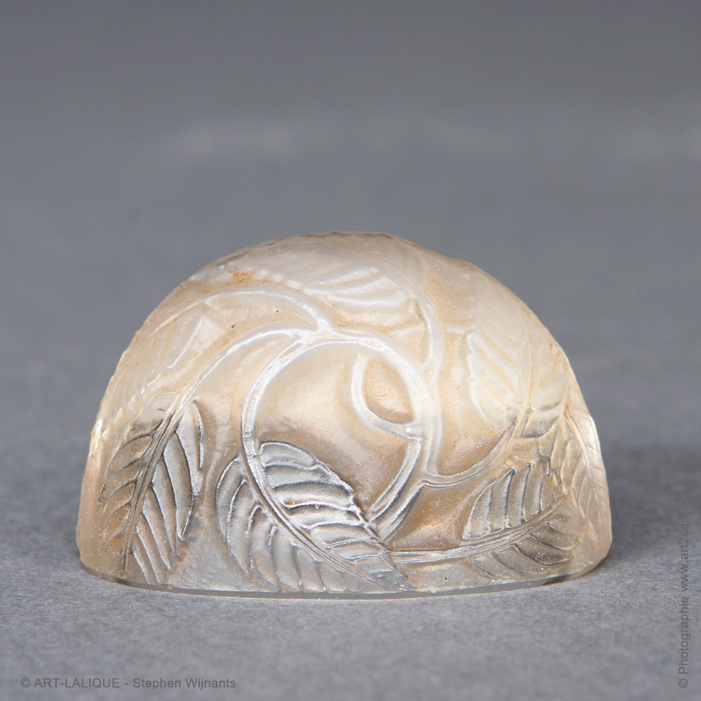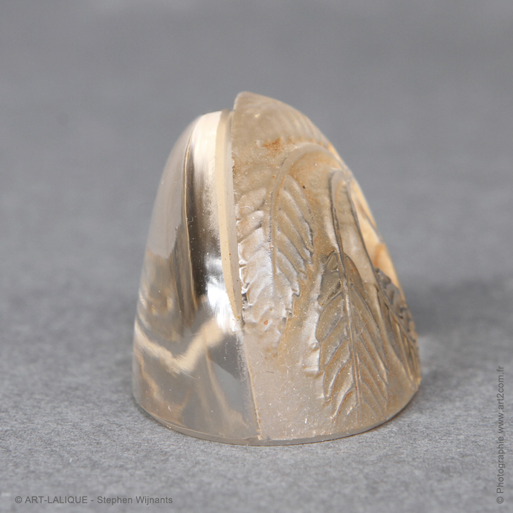 Ensemble de 6 dans leur boîte d'origine - Verre blanc - Patine sépia. Référence : Félix Marcilhac, catalogue raisonné de l'oeuvre de verre de R.Lalique, éd. de l'Amateur Paris, 1994, p.784