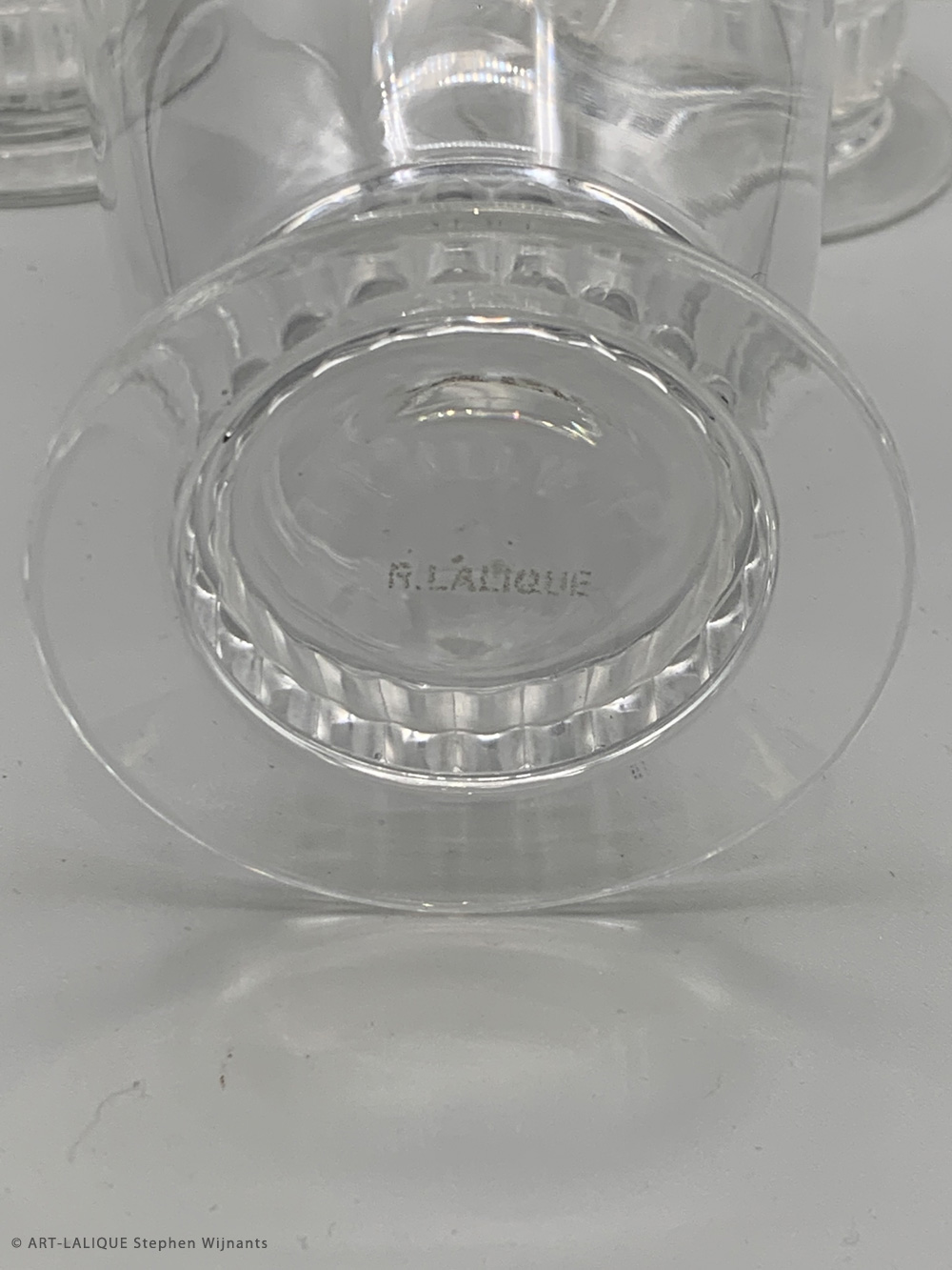 4 verres à limonade - Verre blanc. Référence : Félix Marcilhac, catalogue raisonné de l'oeuvre de verre de R.Lalique, éd. de l'Amateur Paris, 1994, p.