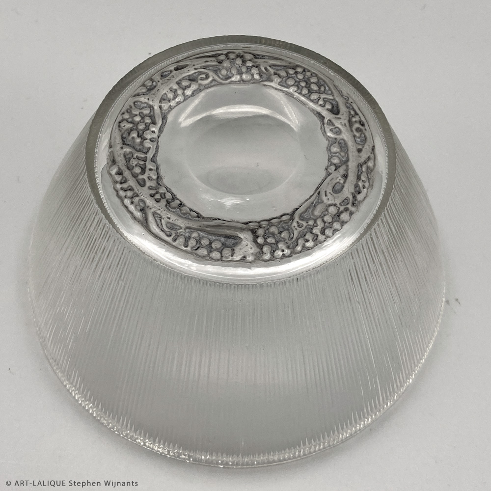 Verre blanc émaillé noir/brun. Référence : Félix Marcilhac, catalogue raisonné de l'oeuvre de verre de R.Lalique, éd. de l'Amateur Paris, 1994, p.700