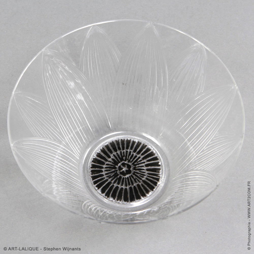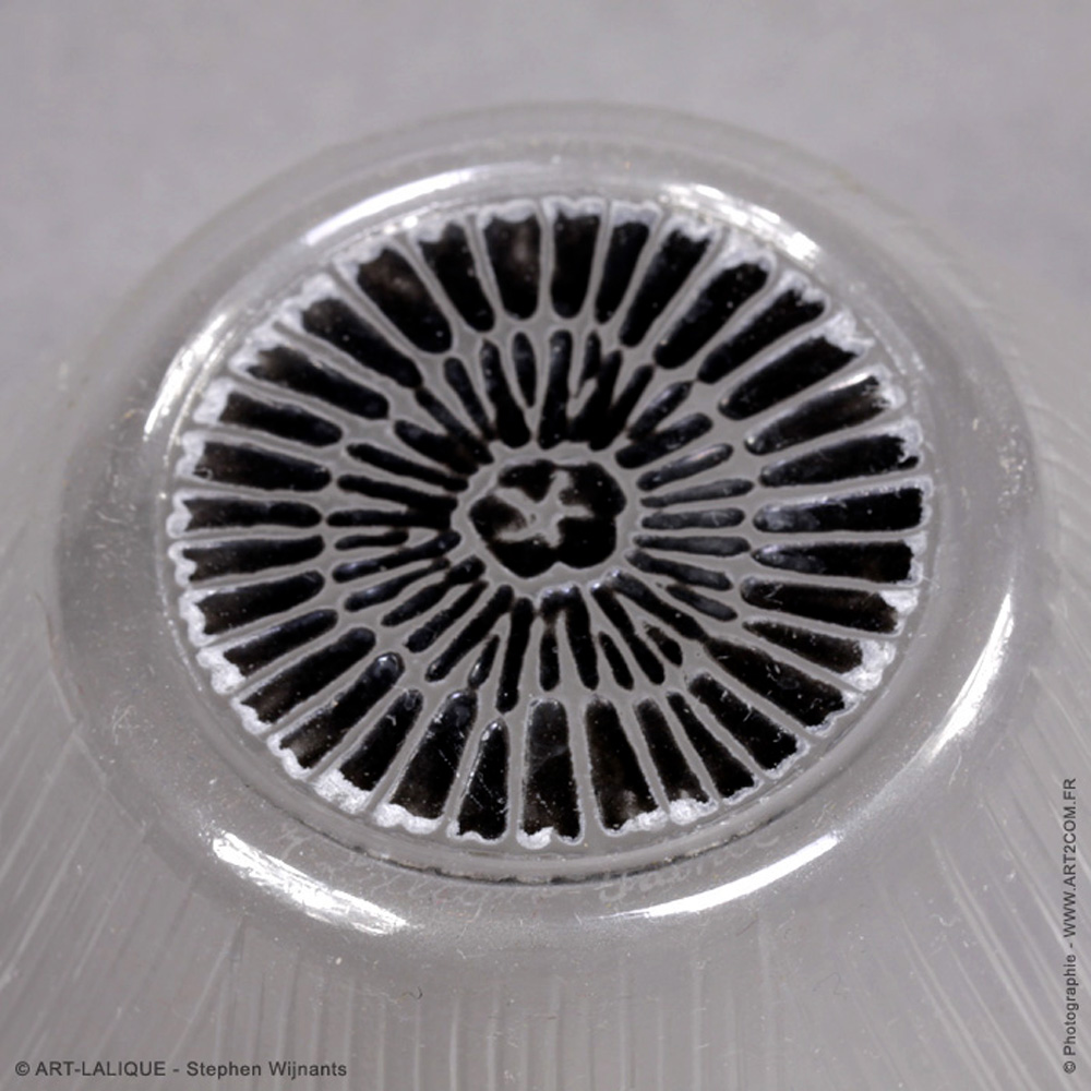 Ensemble de 9 bols à main. Verre blanc émaillé noir. Référence : Félix Marcilhac, catalogue raisonné de l'oeuvre de verre de R.Lalique, éd. de l'Amateur Paris, 1994, p. 727