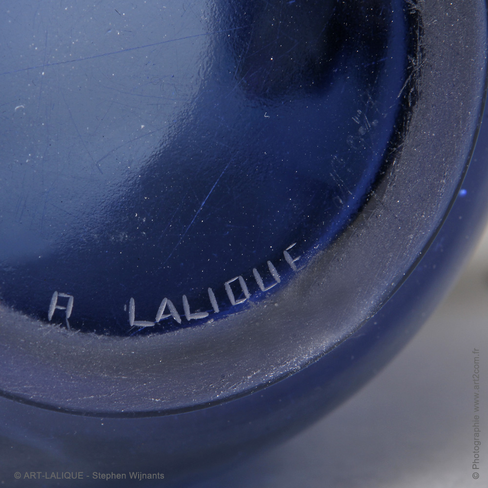 Verre de couleur bleue. Référence : Félix Marcilhac, catalogue raisonné de l'oeuvre de verre de R.Lalique, éd. de l'Amateur Paris, 1994, p.430