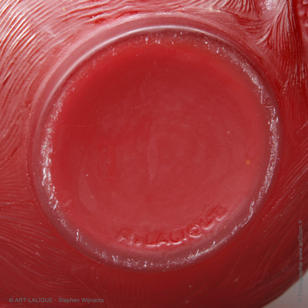 Verre de couleur rouge. Référence : Félix Marcilhac, catalogue raisonné de l'oeuvre de verre de R.Lalique, éd. de l'Amateur Paris, 1994, p.425