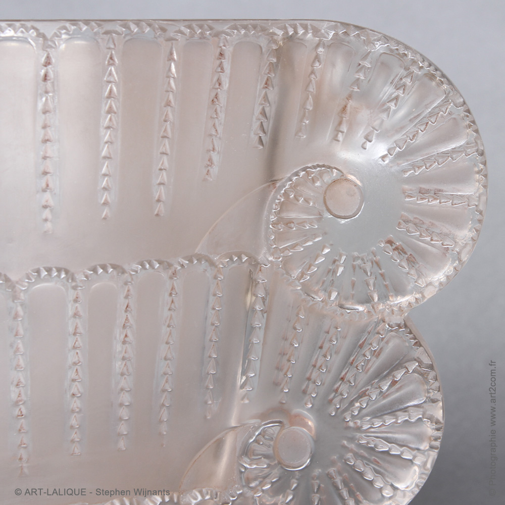 Verre blanc - Patine sépia. Référence : Félix Marcilhac, catalogue raisonné de l'oeuvre de verre de R.Lalique, éd. de l'Amateur Paris, 1994, p.465