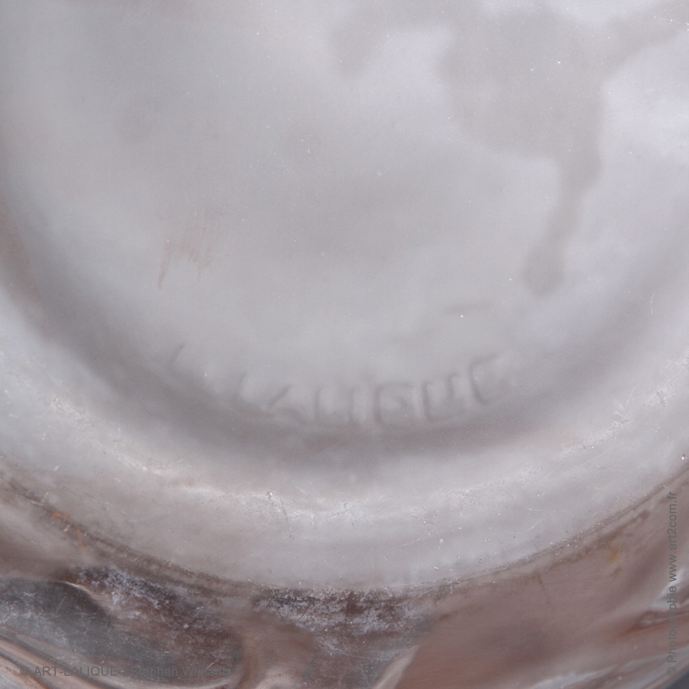 Verre blanc - Patine sépia. Référence : Félix Marcilhac, catalogue raisonné de l'oeuvre de verre de R.Lalique, éd. de l'Amateur Paris, 1994, p.434