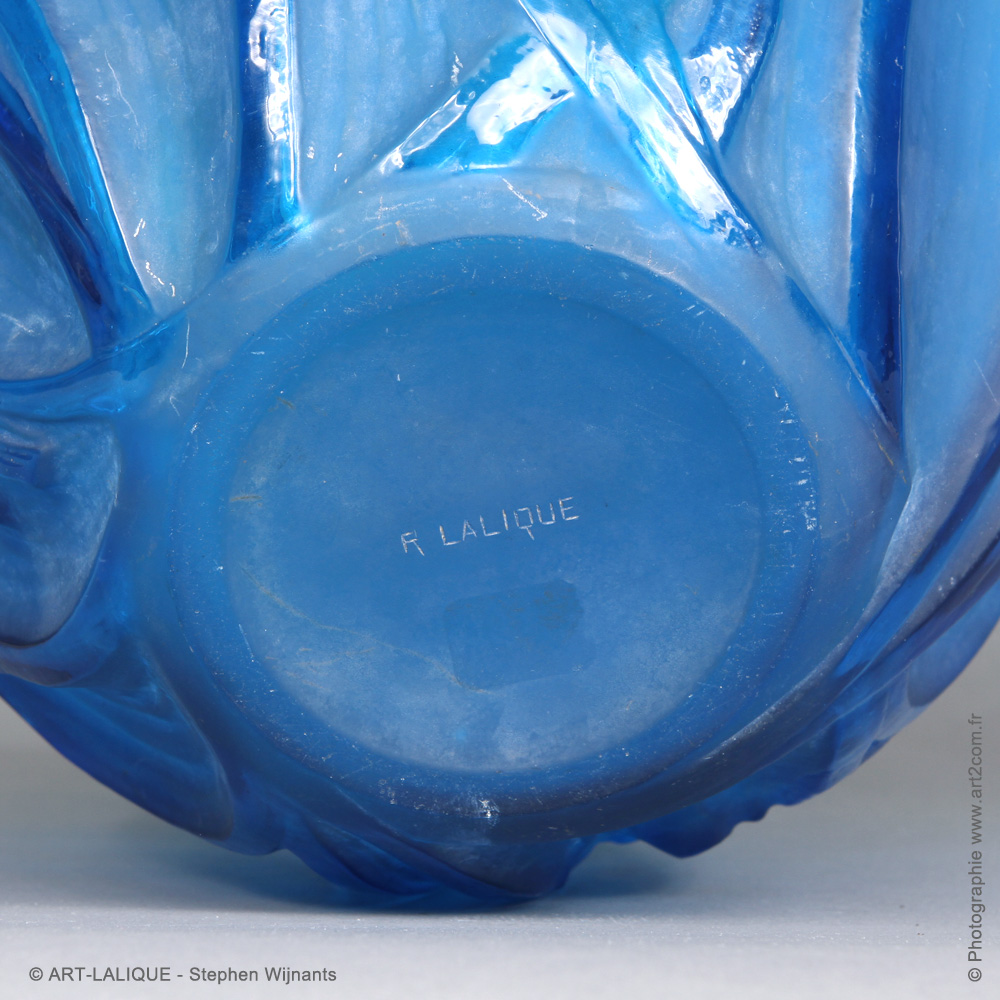 Verre couleur bleue. Référence : Félix Marcilhac, catalogue raisonné de l'oeuvre de verre de R.Lalique, éd. de l'Amateur Paris, 1994, p.414.