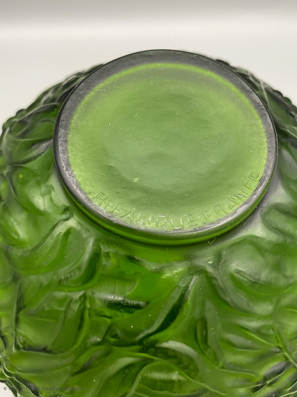 Verre couleur verte. Référence : Félix Marcilhac, catalogue raisonné de l'oeuvre de verre de R.Lalique, éd. de l'Amateur Paris, 1994, p.427