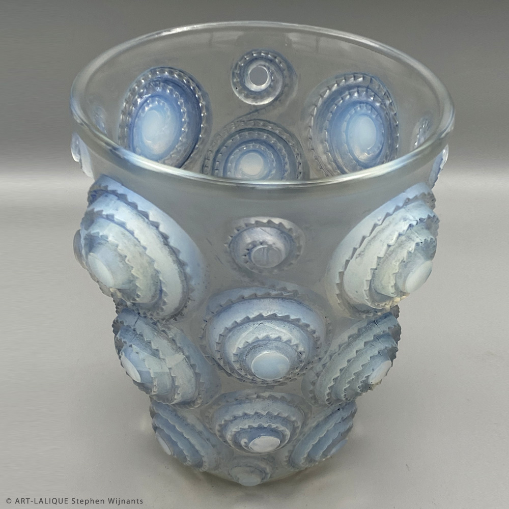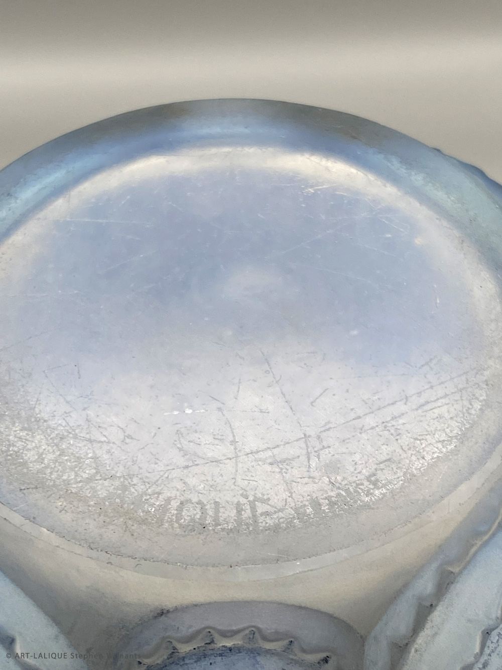 Verre opalescent- Patine bleue. Référence : Félix Marcilhac, catalogue raisonné de l'oeuvre de verre de R.Lalique, éd. de l'Amateur Paris, 1994, p. 451