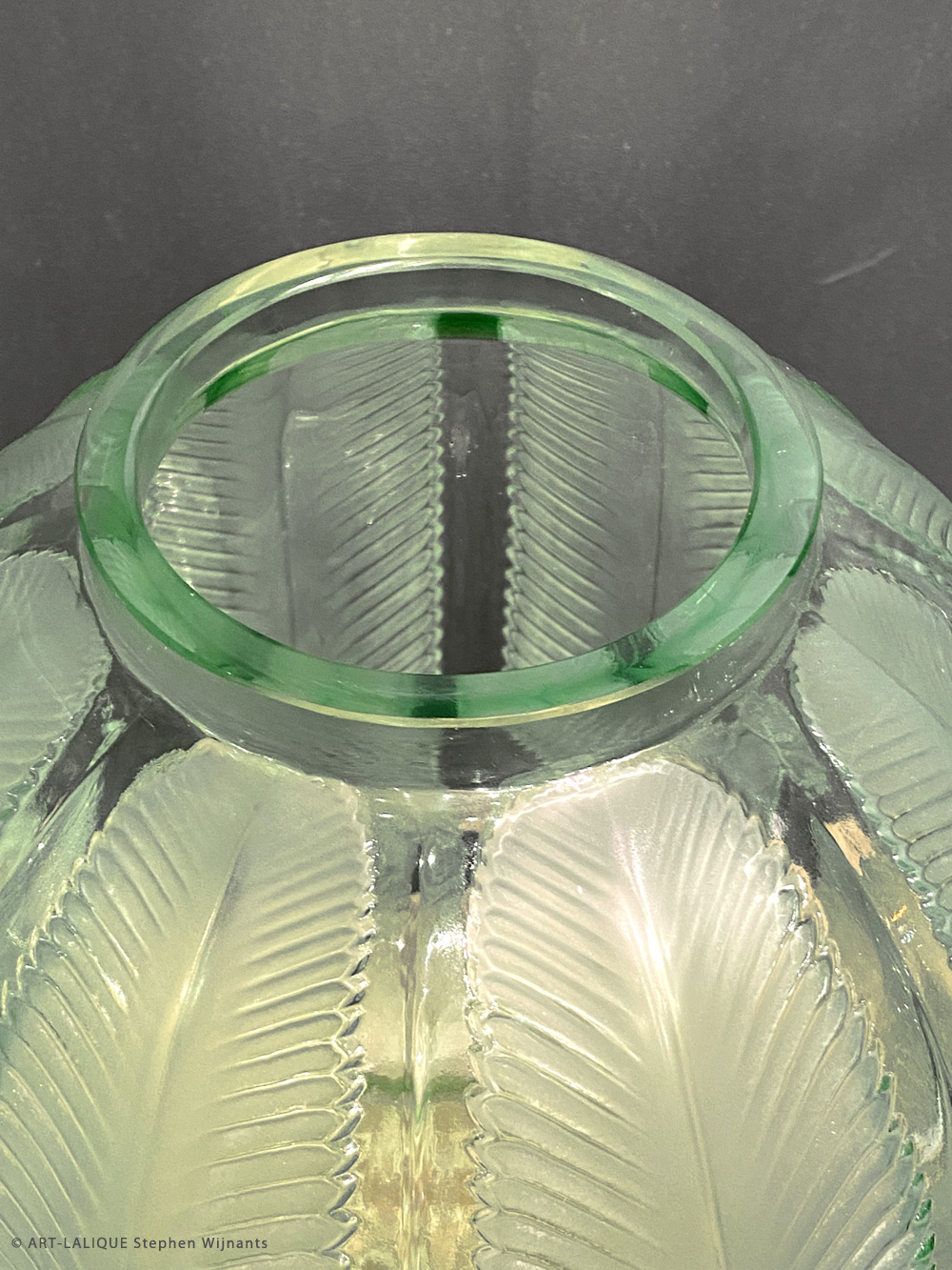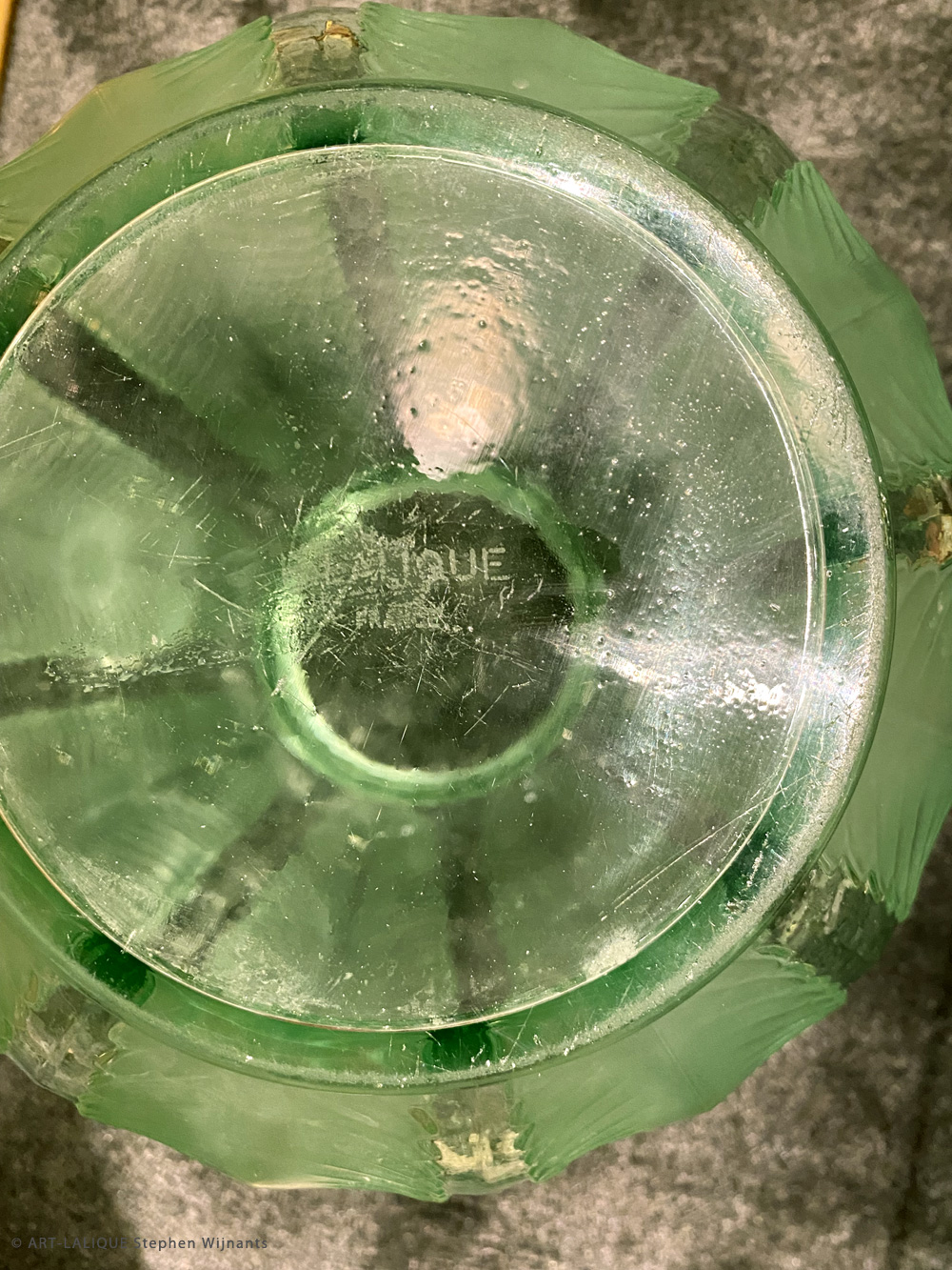Verre couleur vert. Référence : Félix Marcilhac, catalogue raisonné de l'oeuvre de verre de R.Lalique, éd. de l'Amateur Paris, 1994, p. 455