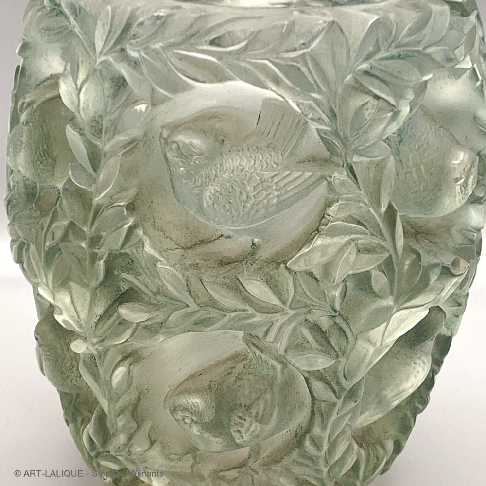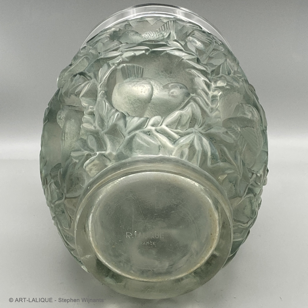 Verre blanc - Patine verte - Moule 10-936. Référence : Félix Marcilhac, catalogue raisonné de l'oeuvre de verre de R.Lalique, éd. de l'Amateur Paris, 1994, p.461