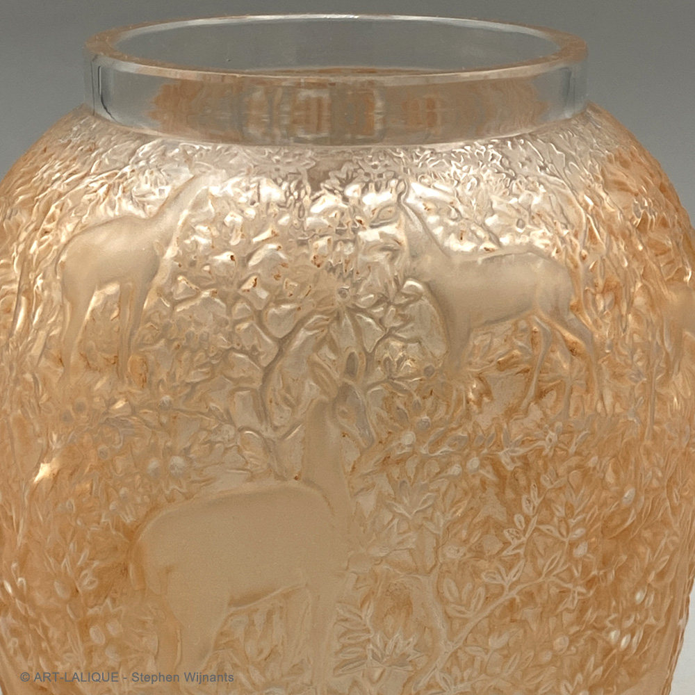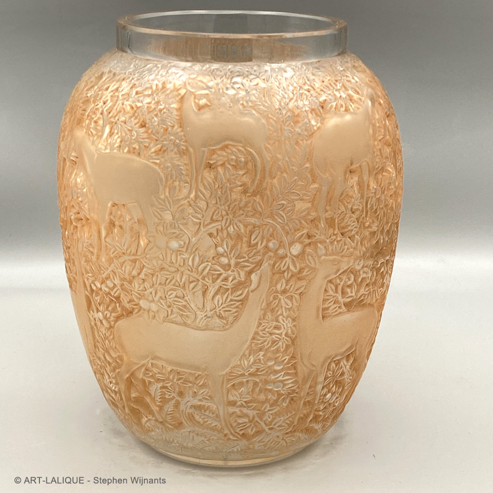 Verre blanc - Patine sienne - Moule 12-214. Référence : Félix Marcilhac, catalogue raisonné de l'oeuvre de verre de R.Lalique, éd. de l'Amateur Paris, 1994, p.456
