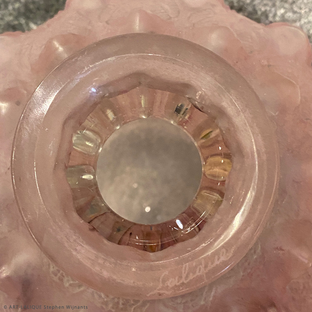Verre blanc - Patine vieux rose. Référence : Félix Marcilhac, catalogue raisonné de l'oeuvre de verre de R.Lalique, éd. de l'Amateur Paris, 1994 p.422