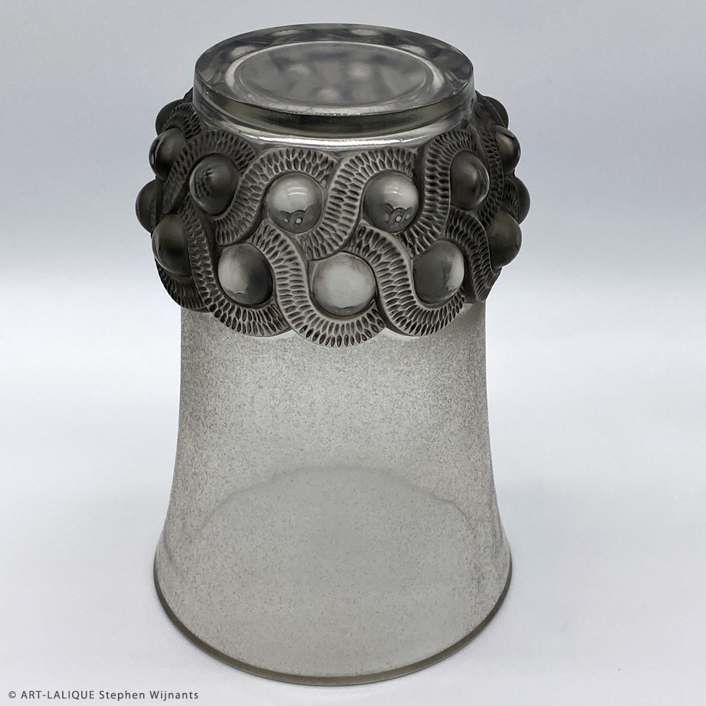 Verre blanc sablé - Patine grise - Signé au tampon. Référence : Félix Marcilhac, catalogue raisonné de l'oeuvre de verre de R.Lalique, éd. de l'Amateur Paris, 1994, p.461 - N°10-883