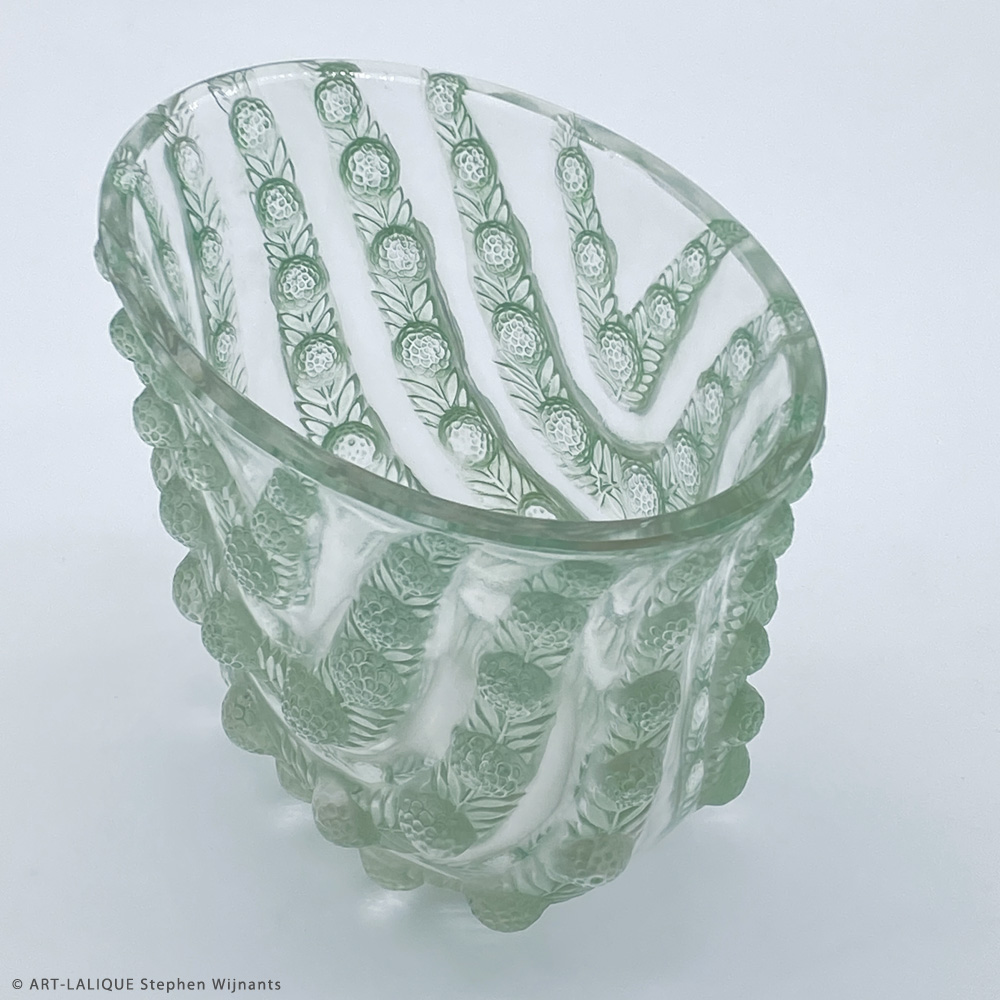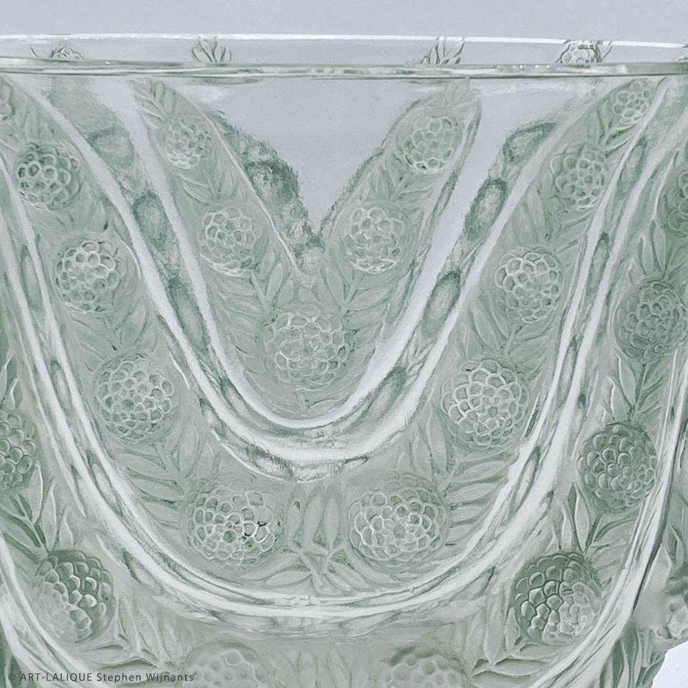 Verre blanc - Patine verte. Référence : Félix Marcilhac, catalogue raisonné de l'oeuvre de verre de R.Lalique, éd. de l'Amateur Paris, 1994, p.466