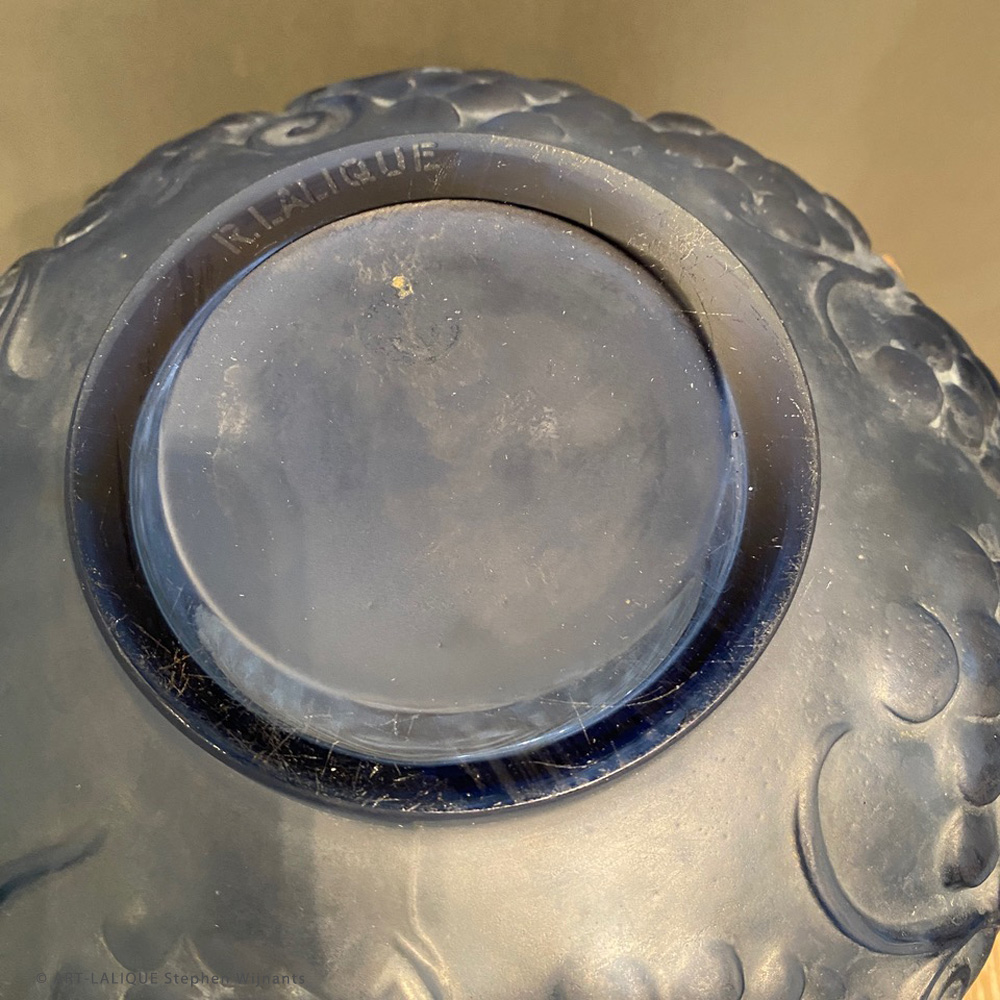 Verre bleu. Référence : Félix Marcilhac, catalogue raisonné de l'oeuvre de verre de R.Lalique, éd. de l'Amateur Paris, 1994, N°1036 p.446