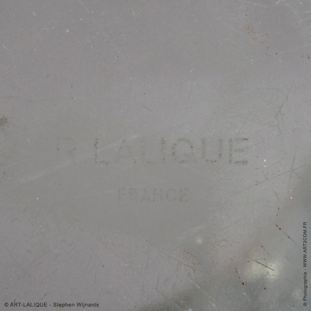 Verre opalescent - Patine bleue. Référence : Félix Marcilhac, catalogue raisonné de l'oeuvre de verre de R.Lalique, éd. de l'Amateur Paris, 1994, p. 450